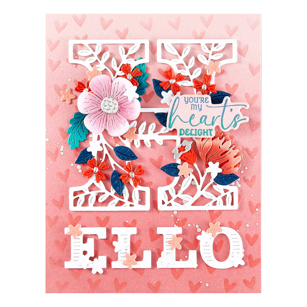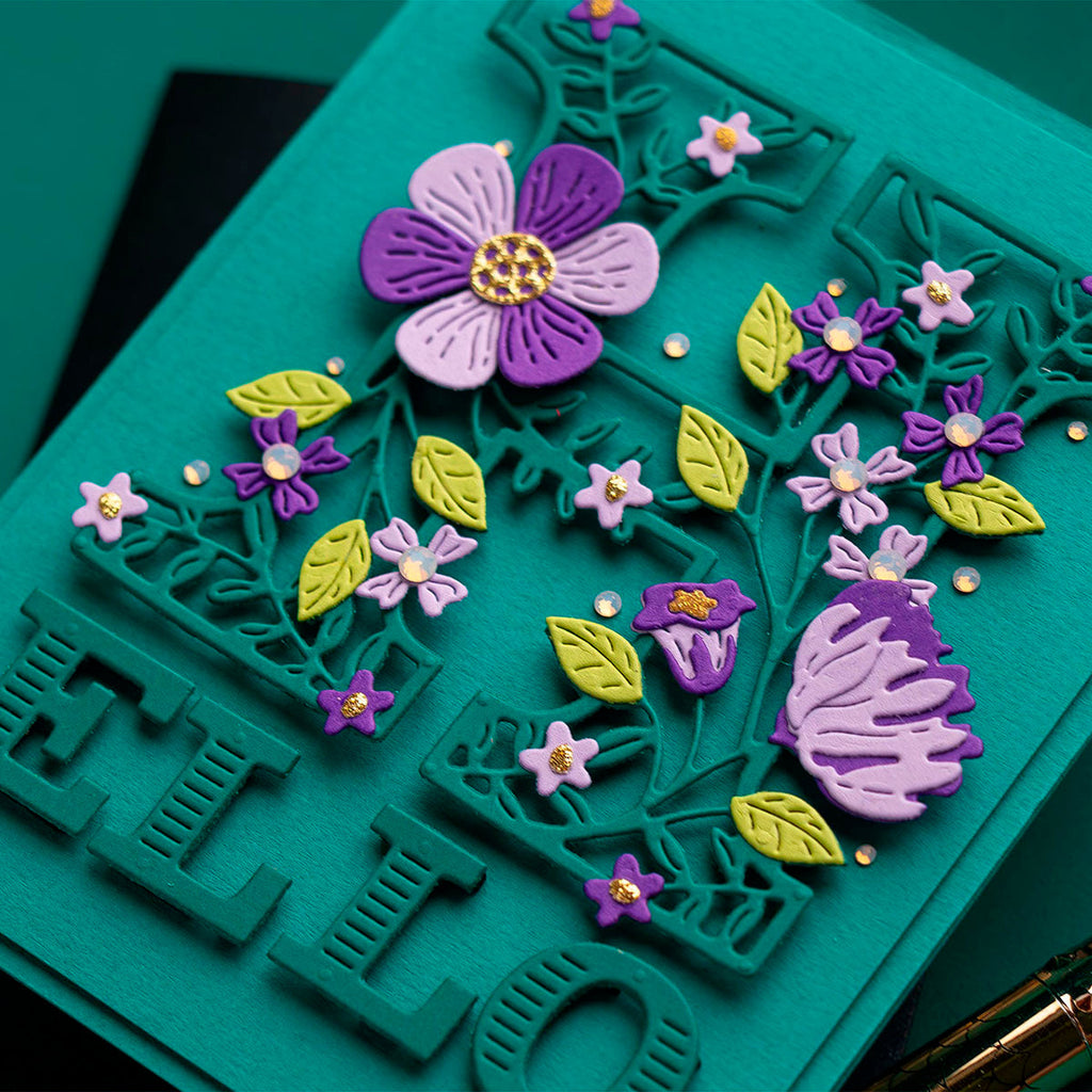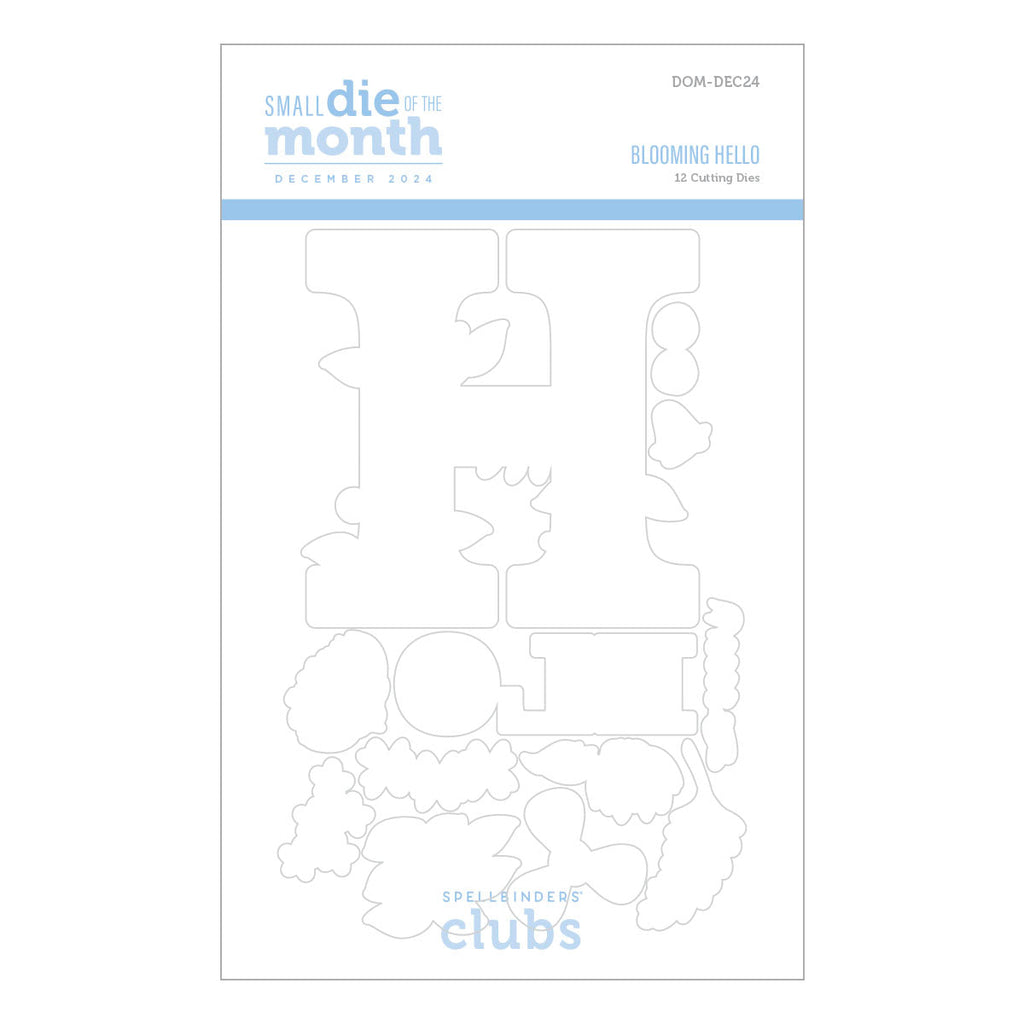 Blooming Hello - December 2024 Small Die of the Month: This delightful 12-piece die set features a beautifully intricate floral theme, perfect for adding a touch of elegance to your crafting projects. The design highlights blooming flowers and lush greenery, making it ideal for creating unique cards, gift tags, decorations, and more. Let your creativity blossom with this versatile and inspiring set!