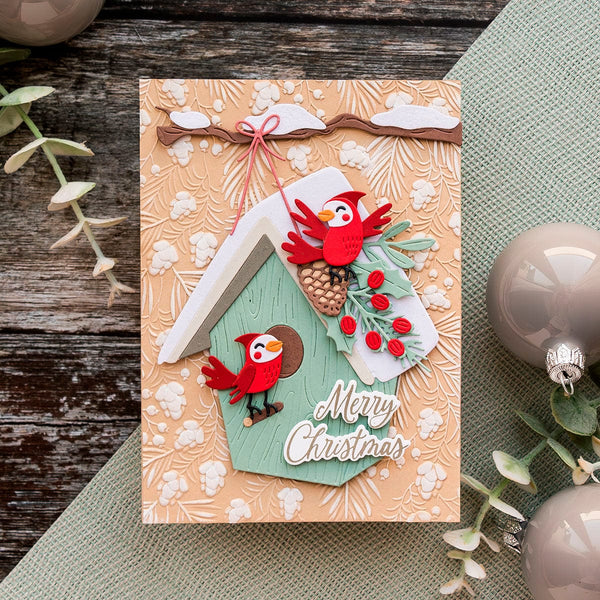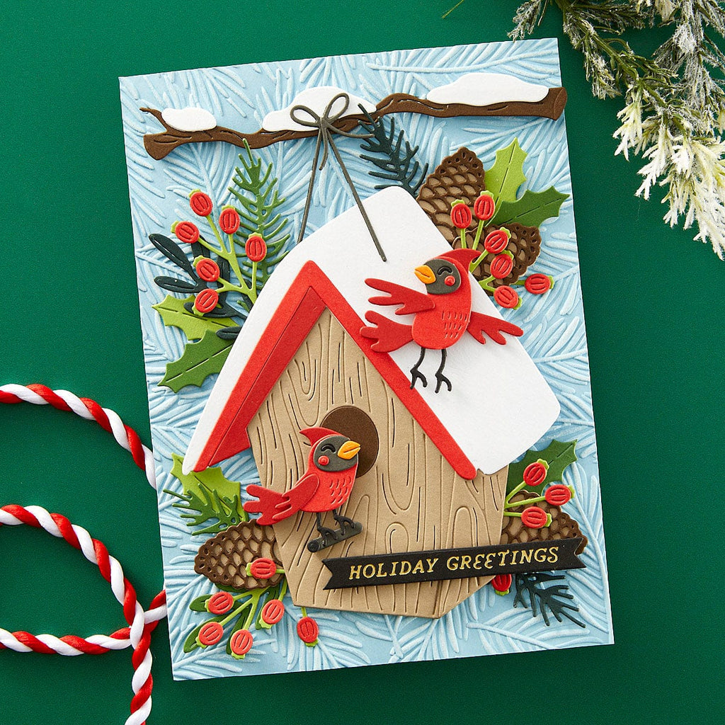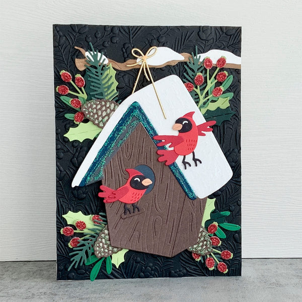 Snowcapped Holidays - Large Die of the Month, this 27-piece Die Sets released July 2024 to our Large Die of the Month Club is ready to celebrate Christmas with a seasonal bird house.