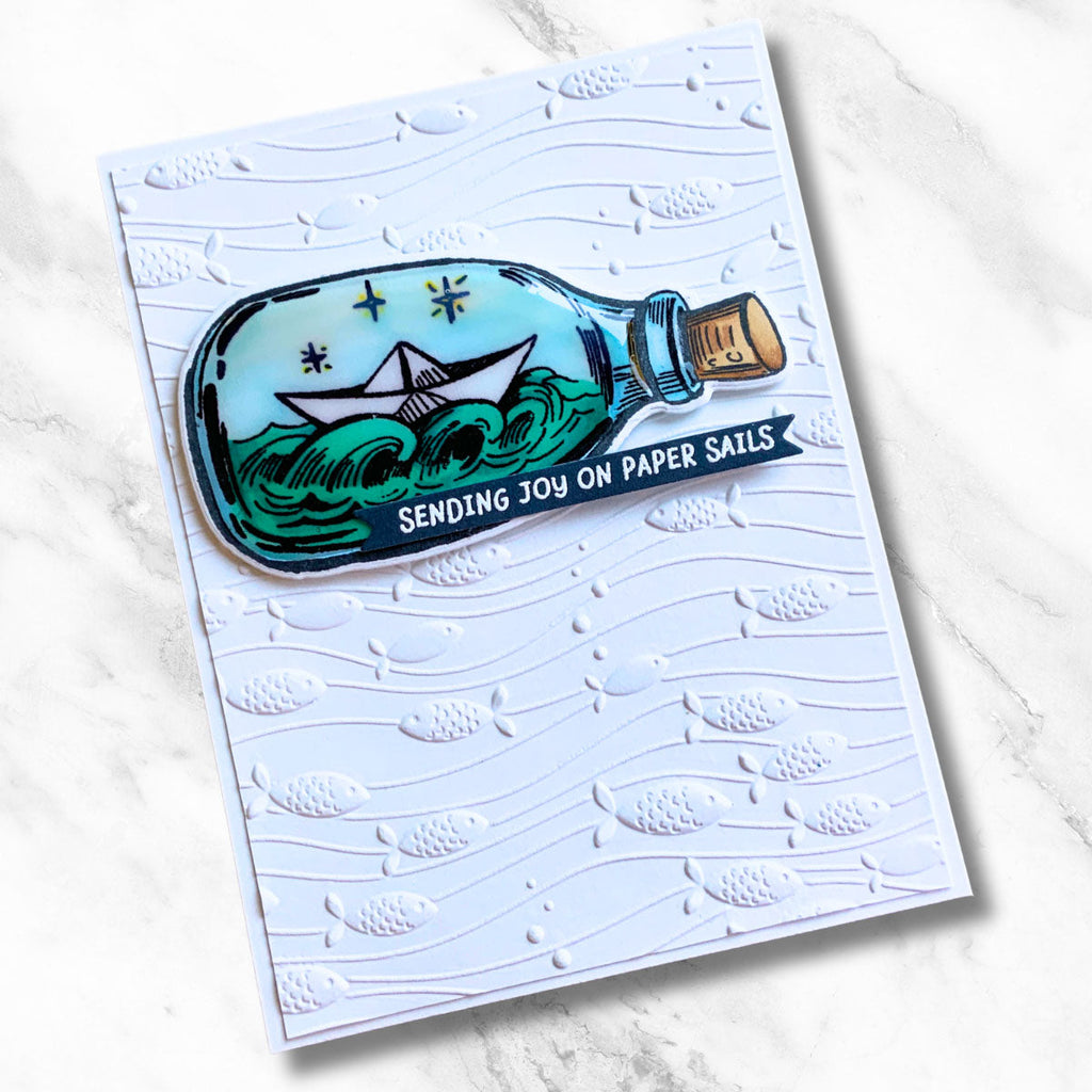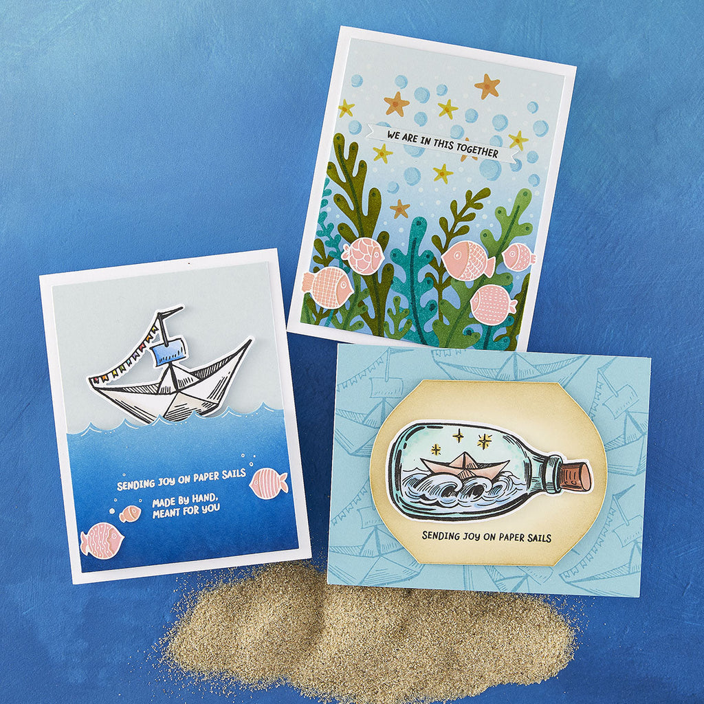 With sentiments like Sending joy on paper sails, Float boldly into a new year, and May your day go swimmingly, youll have the perfect words for birthdays, celebrations, or just-because notes. Use the images alone for clean and simple designs, or layer them with dies and backgrounds to build storytelling scenes. A versatile set that pairs beautifully with the months coordinating kits for endless ocean-inspired possibilities.