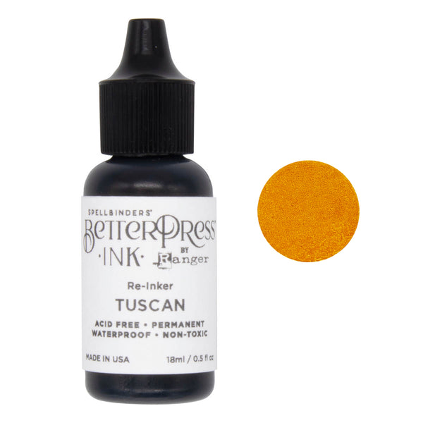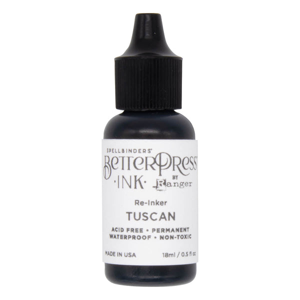 The BetterPress Reinker comes in a convenient 0.5 oz./18 ml bottle, giving you ample amounts to keep your coordinating ink pad fresh and ready for your next project. Unleash your creativity and elevate your crafting game with BetterPress and Tuscan BetterPress Reinker!