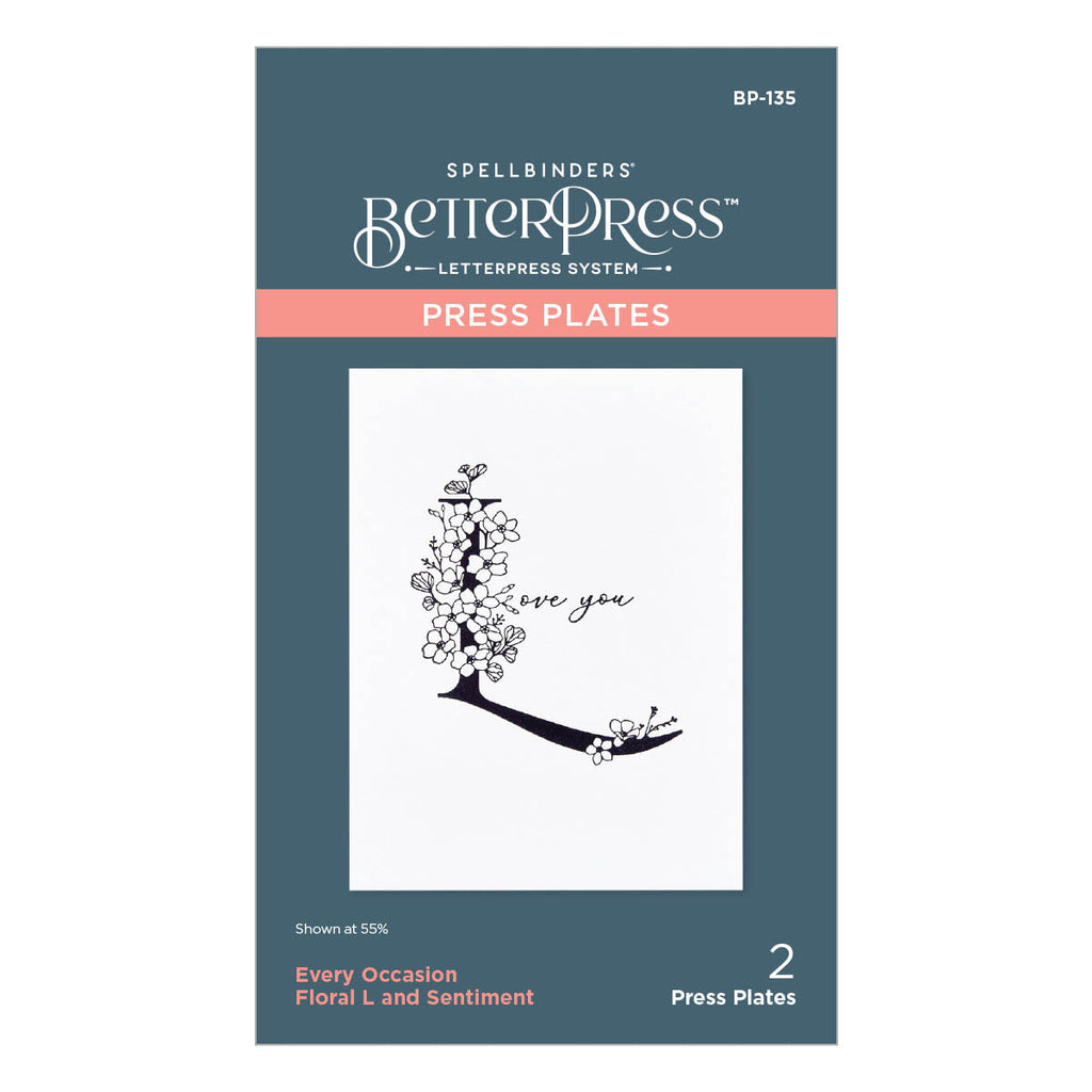 Floral L and Sentiment Press Plate is part of the Every Occasion Floral Alphabet Collection and includes two press plates. The largest plate is a stunning contemporary uppercase L font accented with floral details. The second plate compliments the letter with a sentiment, (L)ove you. Ink the plates with the BetterPress Ink to be pressed against the BetterPress Cotton Card Panel and Sheets for a crisp letterpress design.