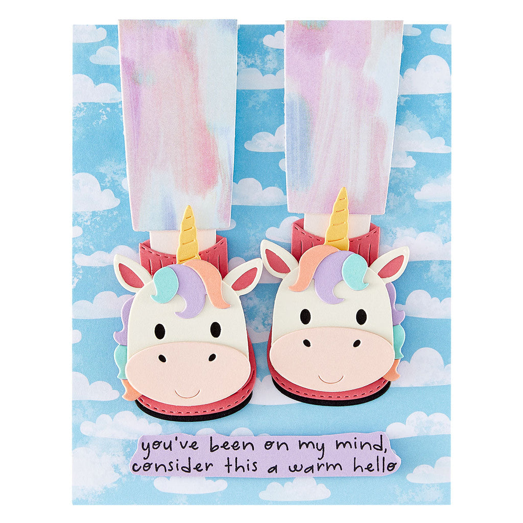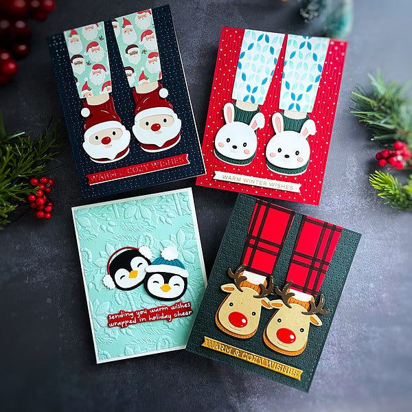 From Santa and his reindeer to whimsical unicorns, cows, and sharks, these adorable slipper friends are ready for every season and every smile. Pair them with the coordinating Cozy Toes Friends clear stamp set for sweet, witty sentiments that match their charm. Whether you’re crafting cards, tags, or gift wraps, this bundle is pure comfort and creativity rolled into one irresistible package.