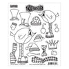 Robin Couture Cling Stamp and Die Bundle is from Stamps & Dies by Dyan Reaveley. It includes S7-252 Robin Couture Etched Dies and DYR-10009 Robin Couture Cling Stamps. Together, they two side-facing birds with long legs, accessorized in fun outfits of hats, scarves, ties and more. Adds wonderful whimsy to your projects! Use with an acrylic stamping block.