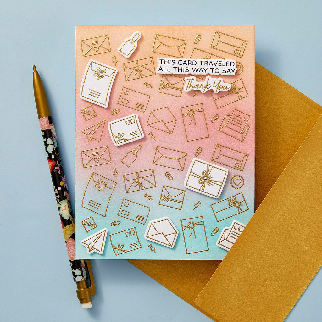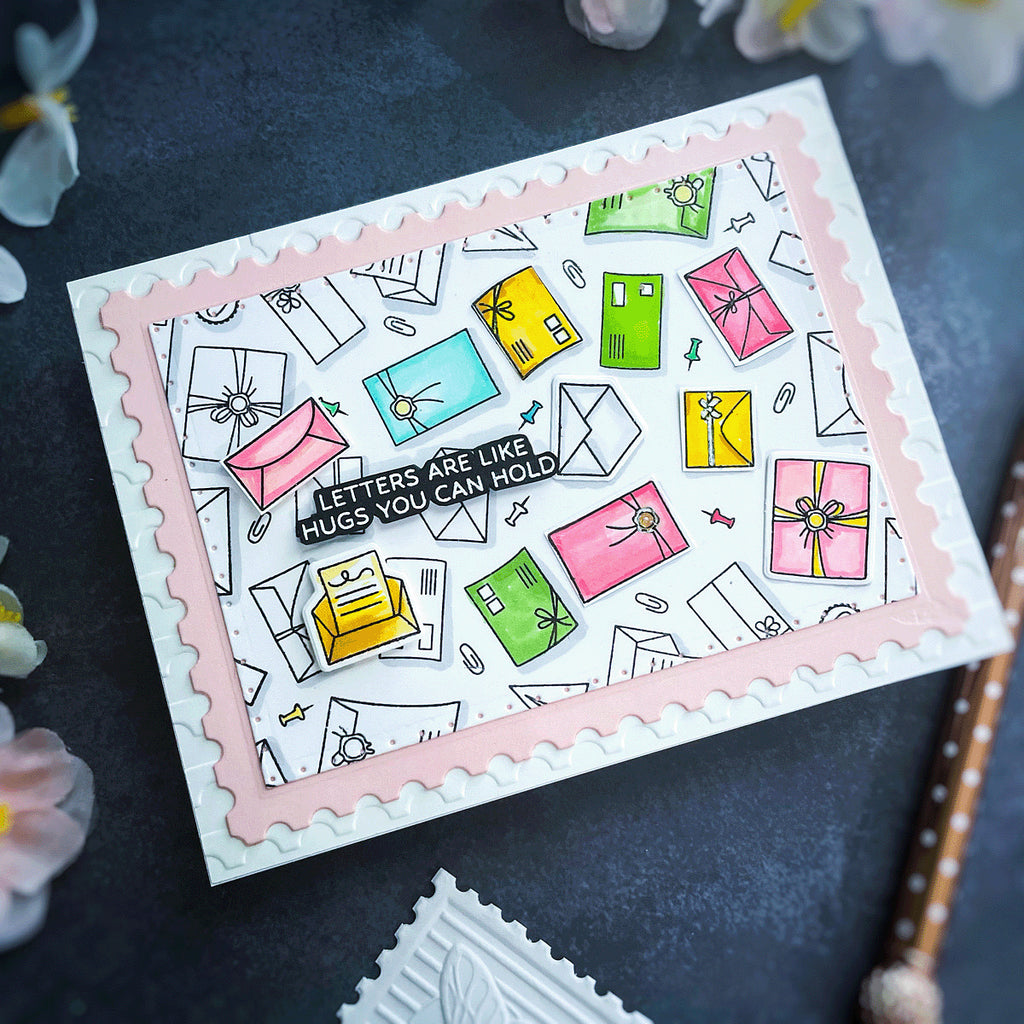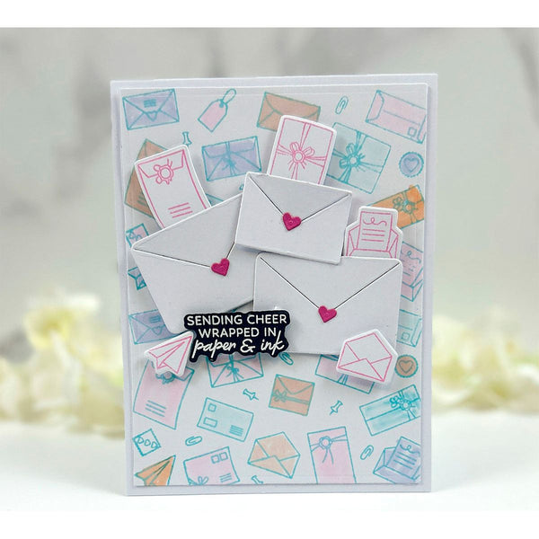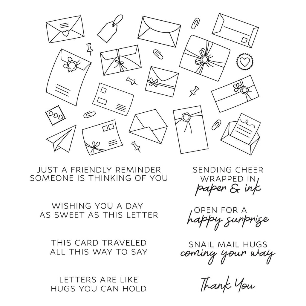 Featuring scattered envelopes, postage details, and sweet messages like Snail Mail Hugs Coming Your Way and Sending Cheer Wrapped in Paper & Ink, this set is ideal for adding a personal, playful touch to card fronts, tags, and journaling pages. It’s a stamp set made for delivering smiles!