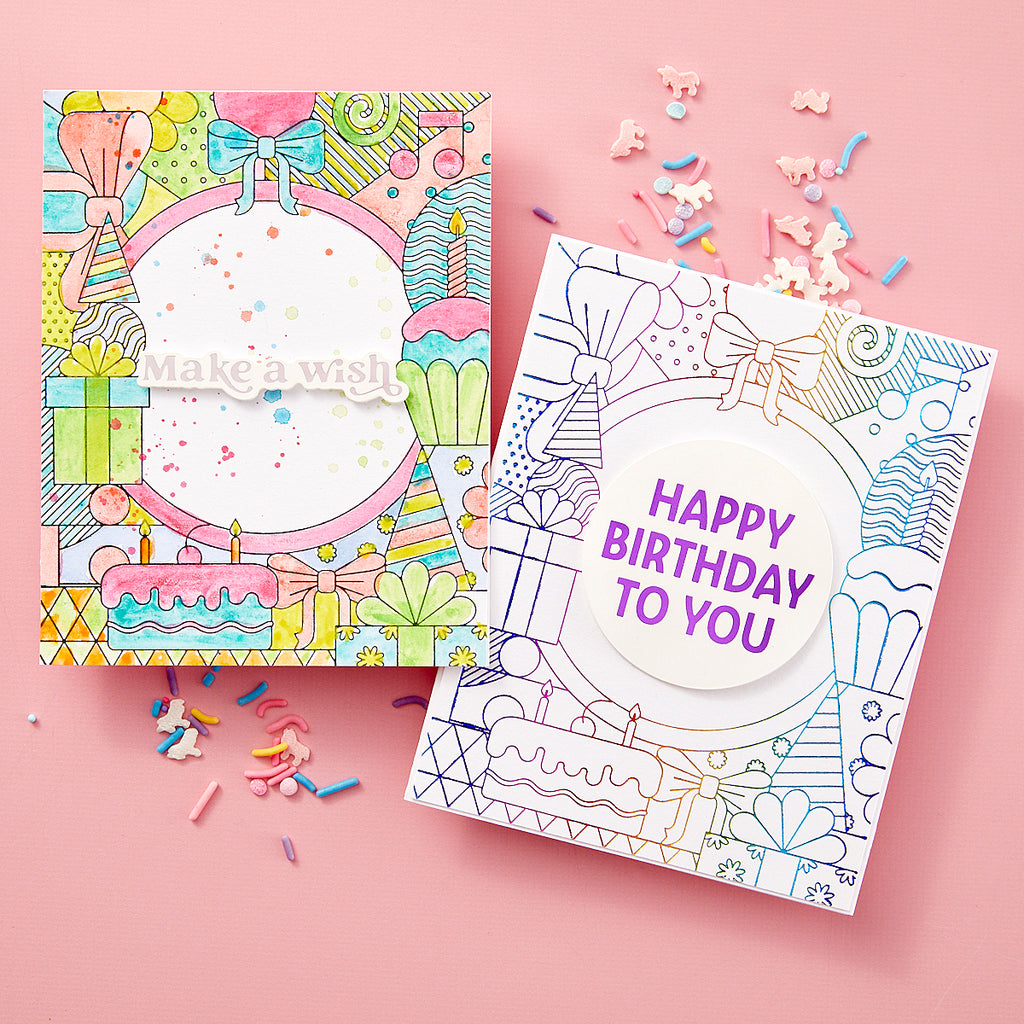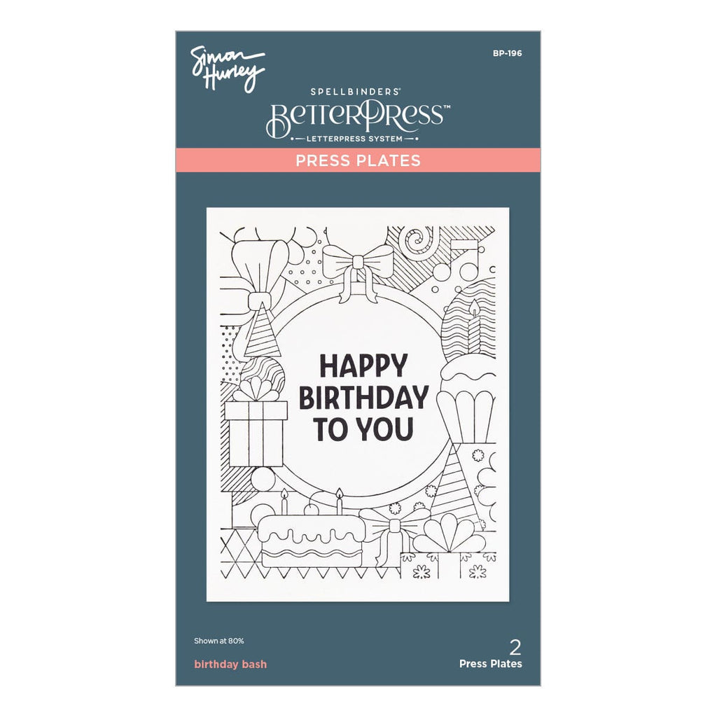 Birthday Bash Press Plate & Die Set is part of the Birthday Bash Collection by Simon Hurley. Fill your A2 card front with a festive and bold birthday celebration design! The smallest of the two press plate set is the perfect sentiment to place in the center of it all. When making this card, you can’t help but smile.