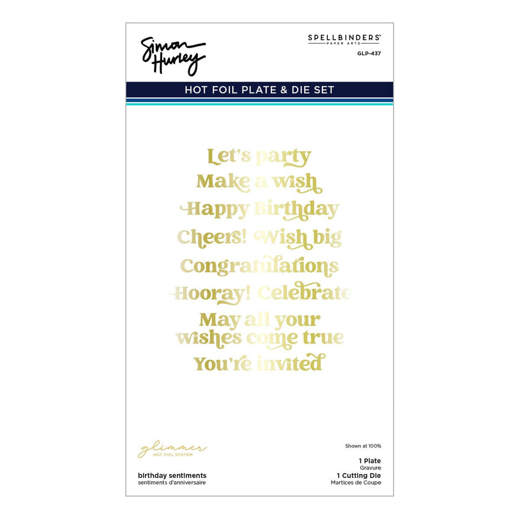 Birthday Sentiments Glimmer Hot Foil Plate & Die Set is part of the Birthday Bash Collection by Simon Hurley. On one hot foil plate, there are ten bold font birthday sentiments that can be foiled all at once. Using its matching die, all the sentiments can be die-cut at the same time. Perfect for creating many birthday cards in a short amount of time!