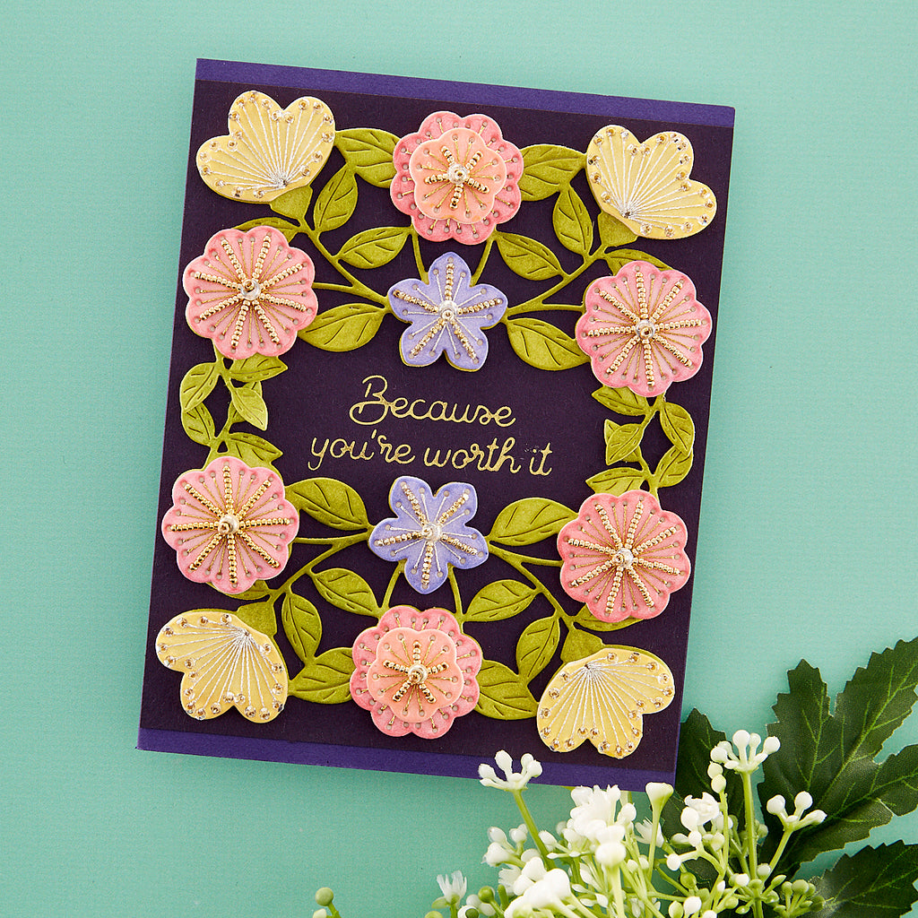 / Stitched Floral Flip Frame Etched Dies from the Stylish Ovals Collection