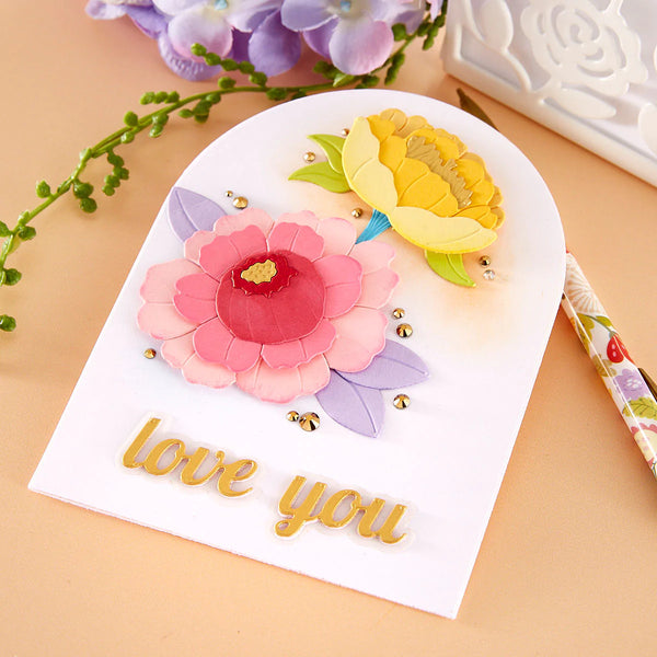 In Bloom Etched Dies are from the Metamorphosis Collection by Simon Hurley. Created, these sweet blooms and leaves from this set of 12 thin metal dies can make a single bloom of a full blossom, or the side profile of a flower. Cut a few to make a dynamic bouquet. So many design possibilities with this set!