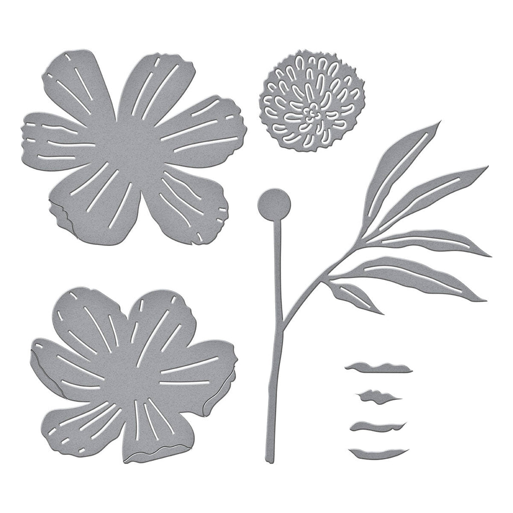 Woodland Tales Floral Etched Dies are part of the Woodland Tales Collection. Make a sweet, stemmed flower from this set of five thin metal cutting dies. Use it for a CAS (Clean And Simple) style card, or cut a bunch for a lovely bouquet design. So many design choices for various projects!