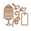 Bird 1: 1.10 x 0.60 inBird 2: 0.95 x 0.50 inTag: 0.80 x 1.60 inFlourish: 1.05 x 2.00 inCage: 1.20 x 2.65 in