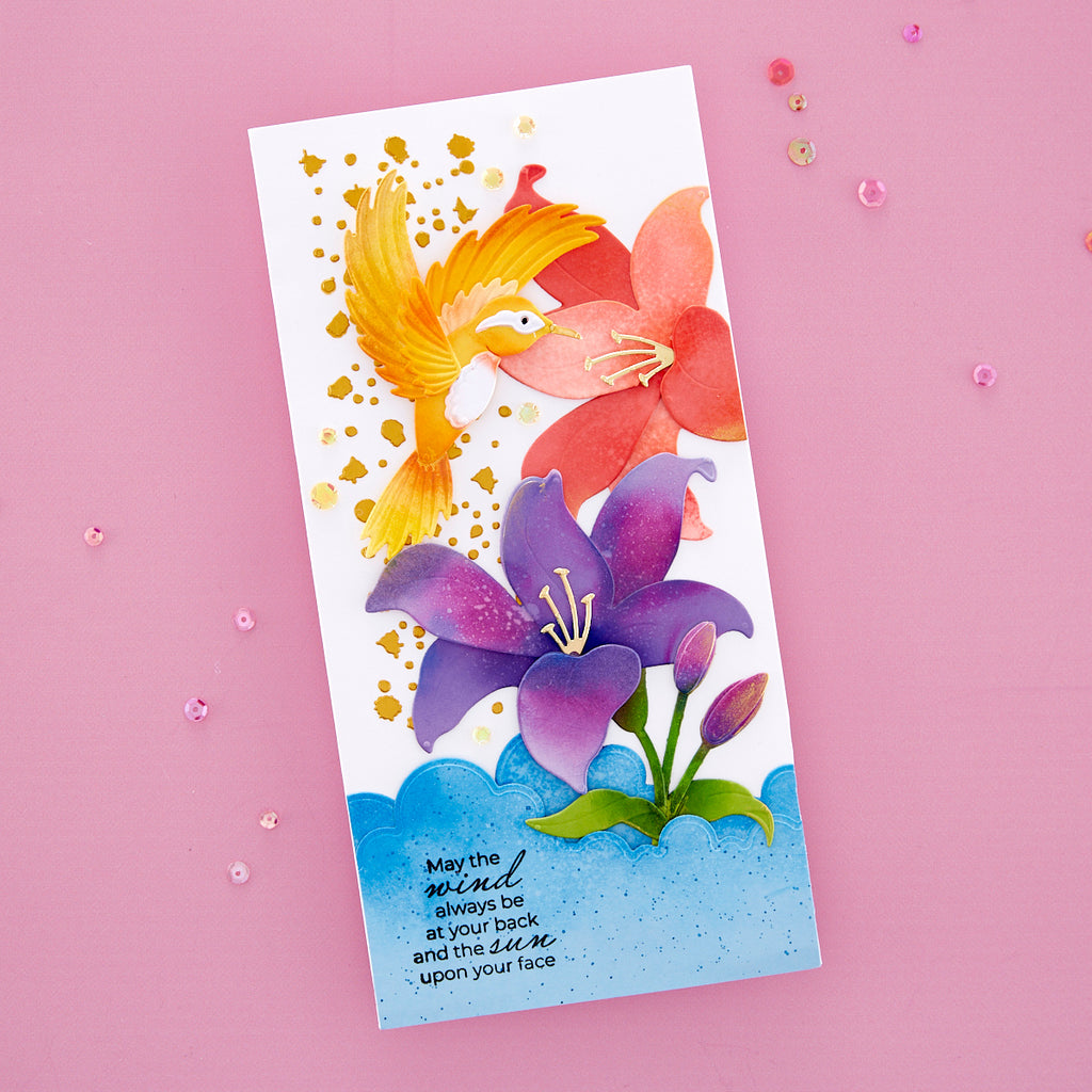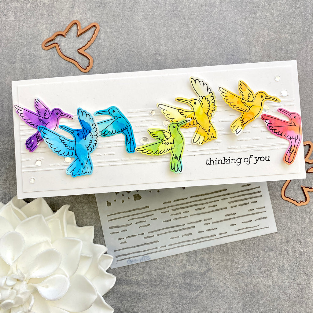 Hummingbird Textures Stencil is from Bibi’s Hummingbirds Collection by Bibi Cameron. It’s a 6 x 6-inch mylar stencil sheet that has three different background designs. Each has a distinctive pattern: lines, random dots, and a dots grid. Add them individually or a combination for a contemporary backdrop or to add movement behind the hummingbird. It’s a fun addition for your creative needs!