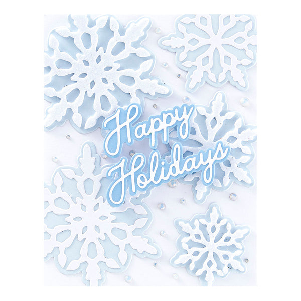 Layering Snowflakes Etched Dies are part of the Let It Snow Collection by Simon Hurley. Create your own kind of dimensional snowflakes by stacking them. With this set of six thin metal cutting dies, you can use papers such as Pop-Up Die Cutting Glitter Foam Sheets, Brushed Cardstock, Mirrored Cardstock and others for a unique design.