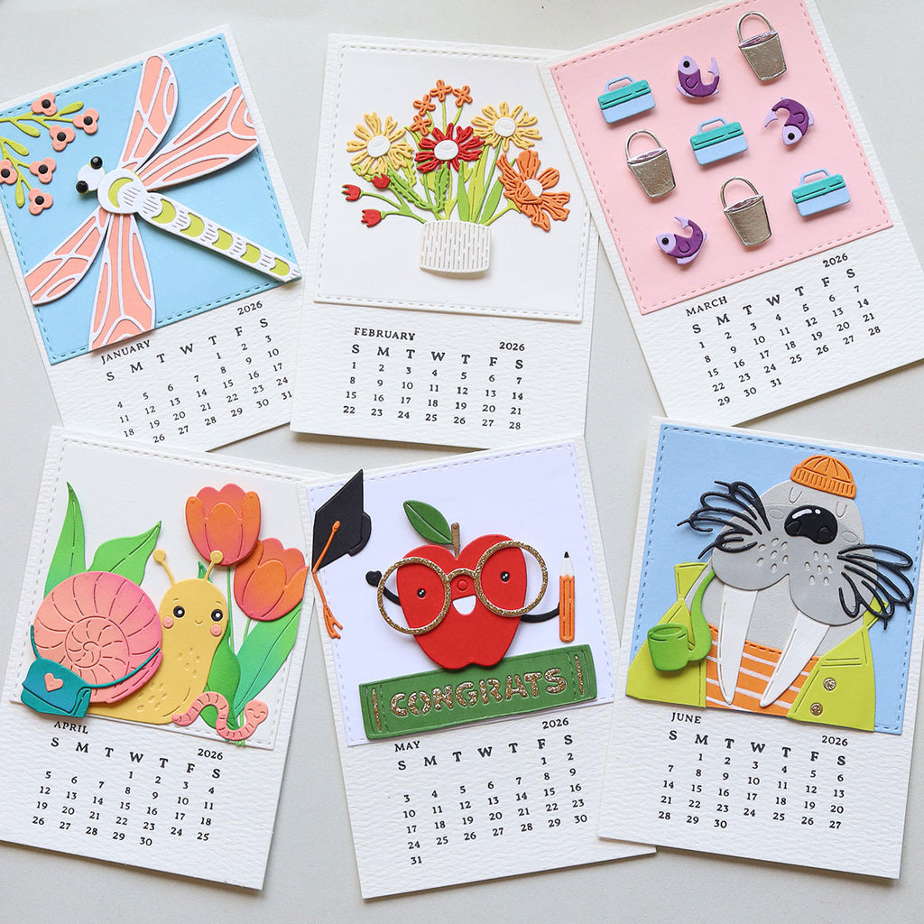 DIY 2026 Calendar BetterPress Plate is part of the Wonderland Collection. The set of 24 plates includes a monthly calendar for the entire year, as well as weekday and month name plates to complete your calendar. Custom calendars are simple to make with this set. Ideal for creating holiday gifts with ease. Combine this set with S5-673 DIY Easel Etched Dies for the perfect place to rest your calendar creation!