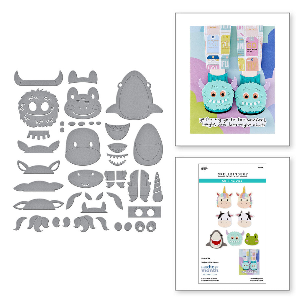 Cozy Toes Friends Etched Dies - Bring back the cozy with even more charm! The Cozy Toes Friends die set expands one of our most-loved club designs, Cozy Toes Slippers, with an irresistible new lineup of snuggly slippers. From a cheerful unicorn and happy cow to a friendly shark, monster, and frog, these playful pals are ready to warm your creative heart (and your toes).