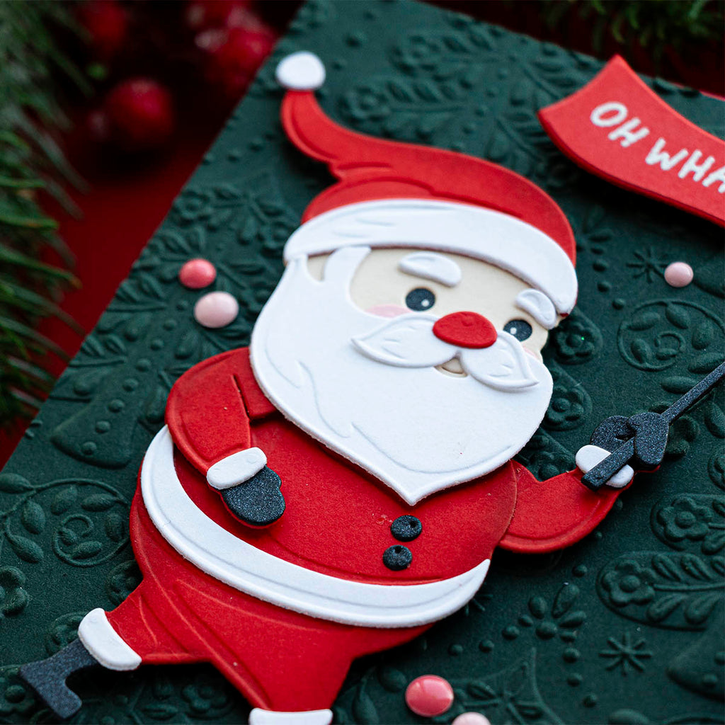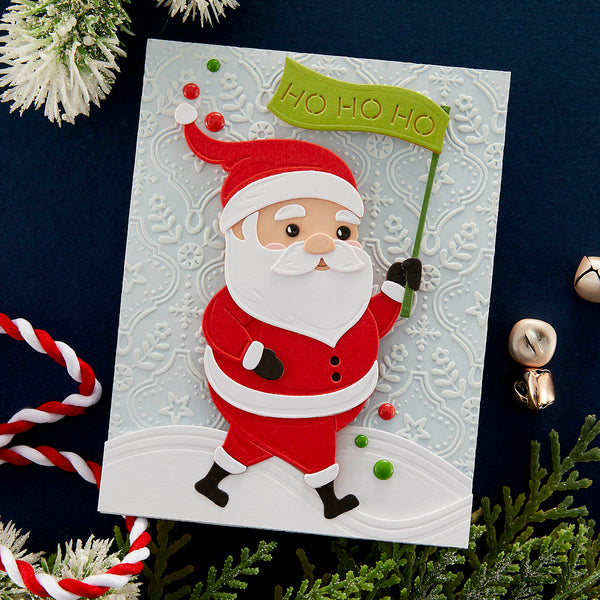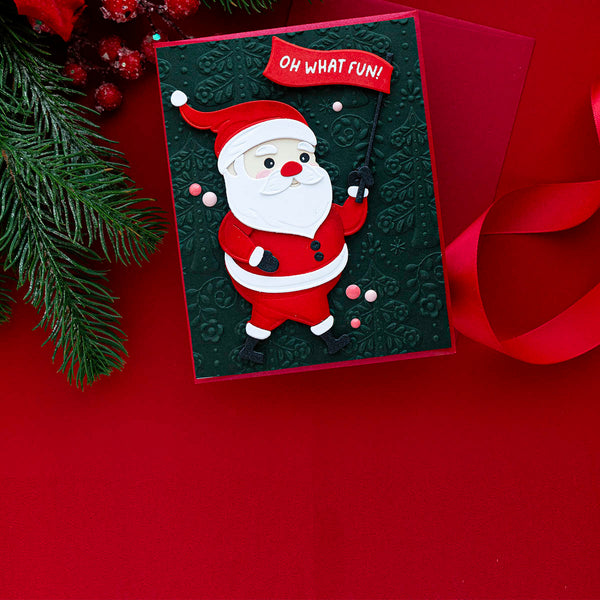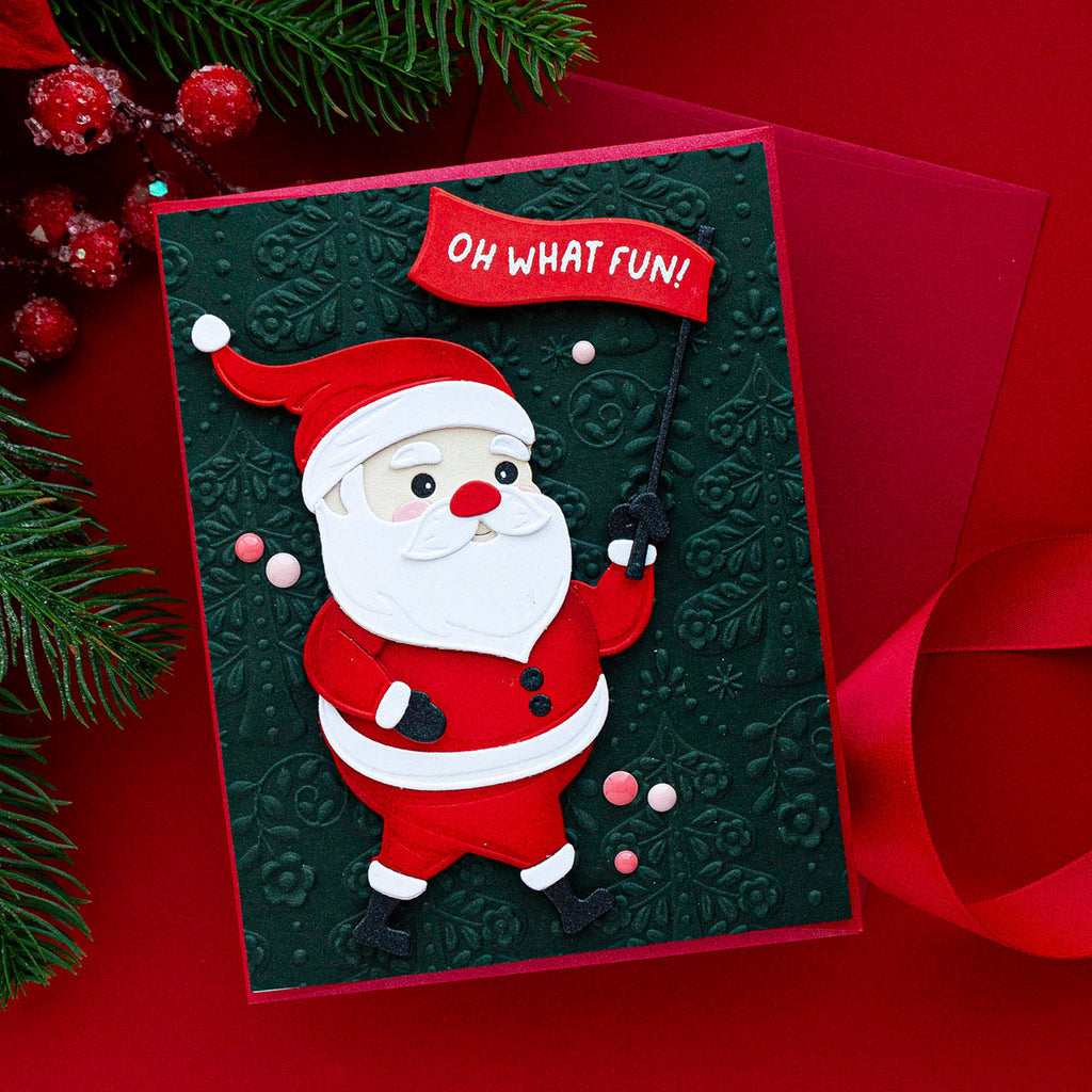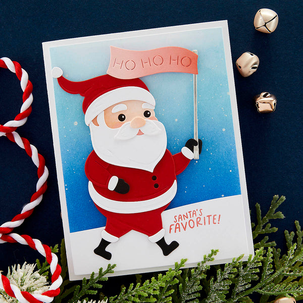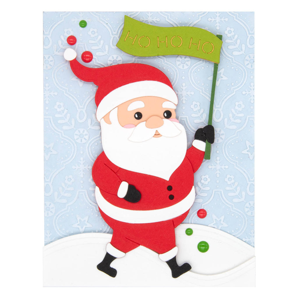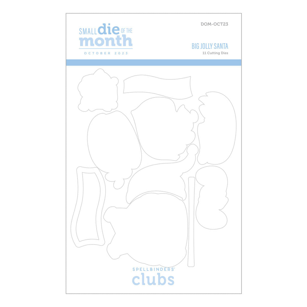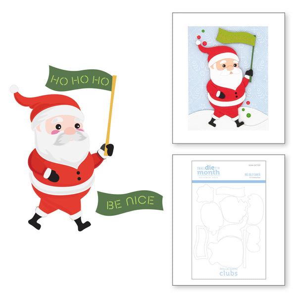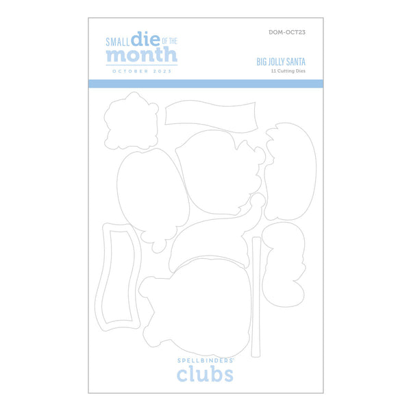 Big Jolly Santa- Small Die of the Month! This 11-piece Die Set released October 2023 to our Small Die of the Month Club creates an adorable Santa centerpiece for your holiday cards. Use to create cards, décor, gift card holder, gifts, and more!
