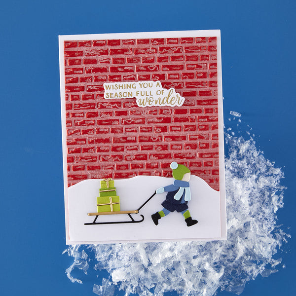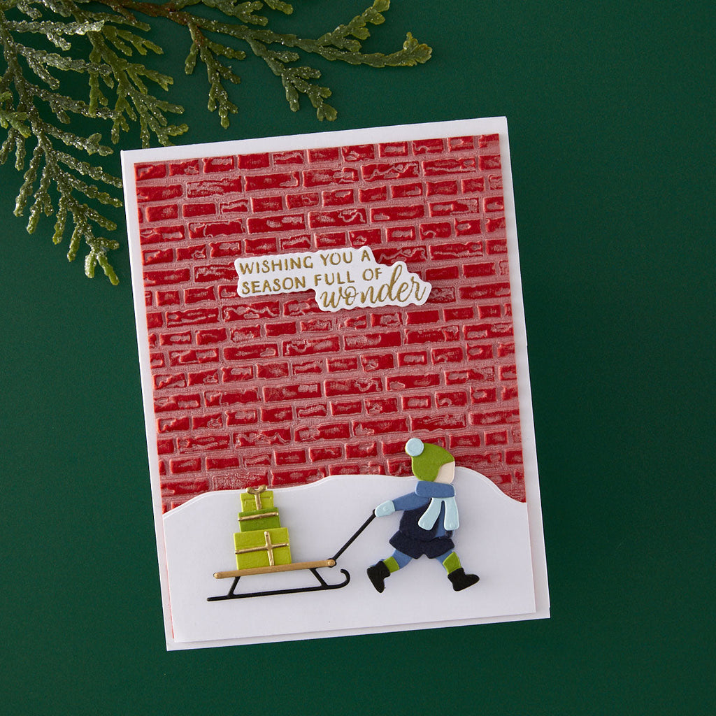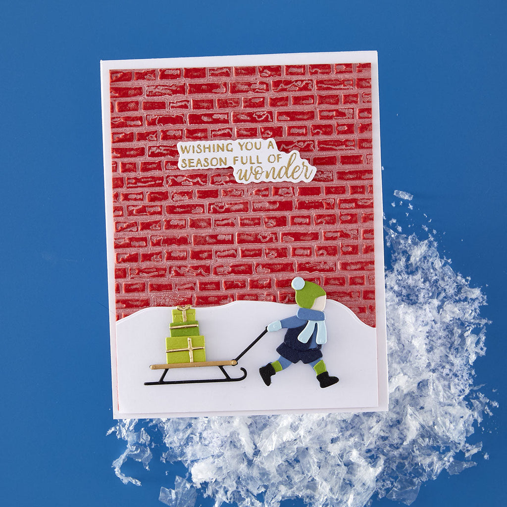Add cozy, dimensional texture to your projects with the Brick by Brick 3D Embossing Folder. This detailed design mimics a classic brick wall, perfect for creating charming holiday scenes, rustic backgrounds, or urban-inspired layers.