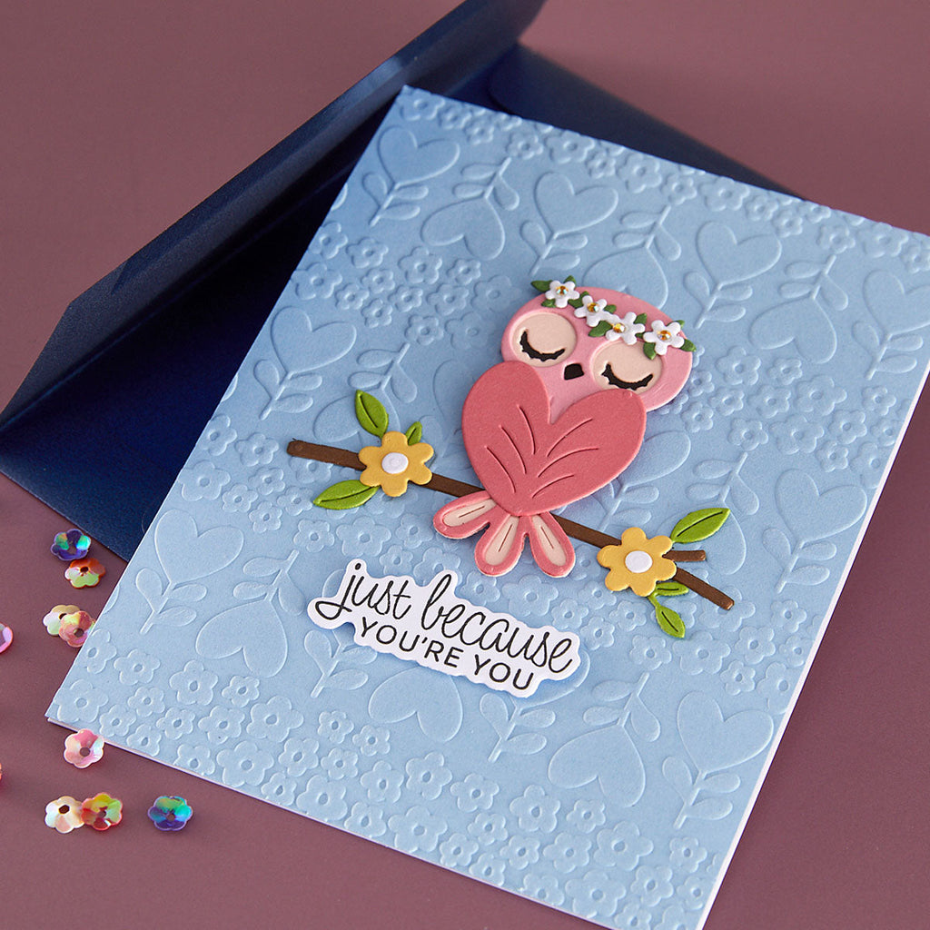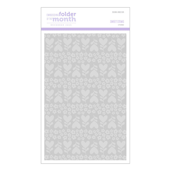 Bring joyful texture and floral charm to your projects with Sweet Stems, the December 2025 Embossing Folder of the Month. This folder features a repeating pattern of stylized blooms, heart-shaped leaves, and petite florals—designed to add playful dimension to cards, tags, and paper crafts with a modern folk-art feel.