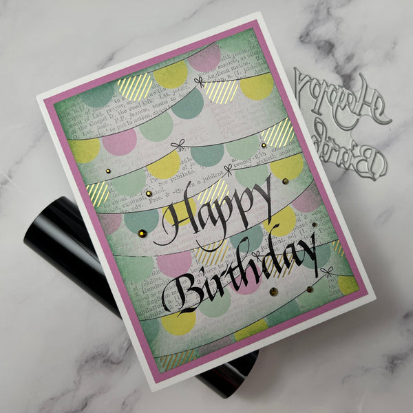 Upright Italic Happy Birthday Press + Foil Plate is from the Upright Italic Everyday Sentiments Collection by Paul Antonio. The plate impresses Happy Birthday in a wonderful Italic font penned by the fabulous Paul Antonio! Makes a beautiful greeting on a card front.