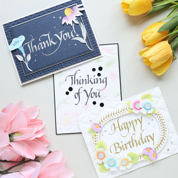 Master Calligrapher Paul Antonio is back with his amazing calligraphy designs! This collection is unique, as his actual handwritten Italic script was transformed into these wonderful plates. Add these Upright Italic Everyday Sentiments to cardmaking creations!