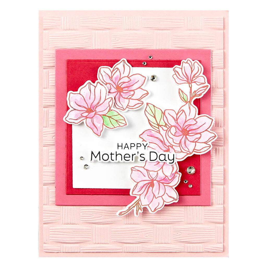 Woven 3D Embossing Folder is a 5.50 x 8.50-inch embossing folder with a background filled with wonderful and intricate weave design inspired the surface of a basket. What a fabulous addition to mixing and matching with the other sets in the Spring Sampler Collection by Simon Hurley!