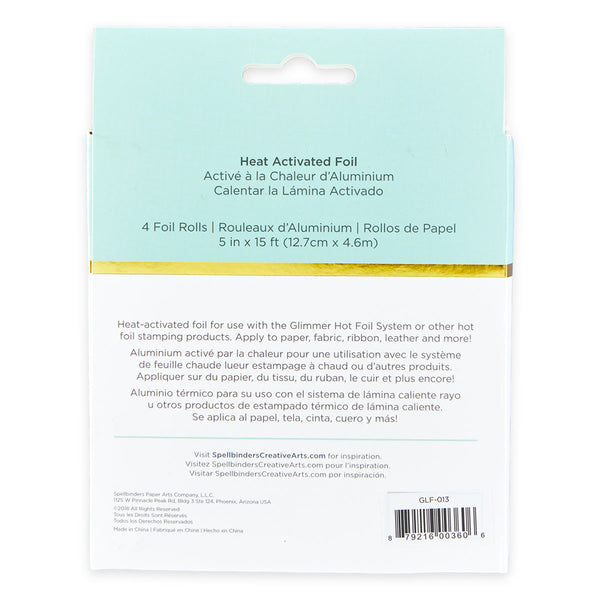 Glimmer Hot Foil Foils add stunning and eye catching foil designs to any project from paper crafts to mixed media and more! The foils are exclusively designed to be used with the Spellbinders Glimmer Hot Foil System. Our foils are designed to work with the Glimmer Hot Foil System and are NOT compatible with laminating systems such as the Minc System.