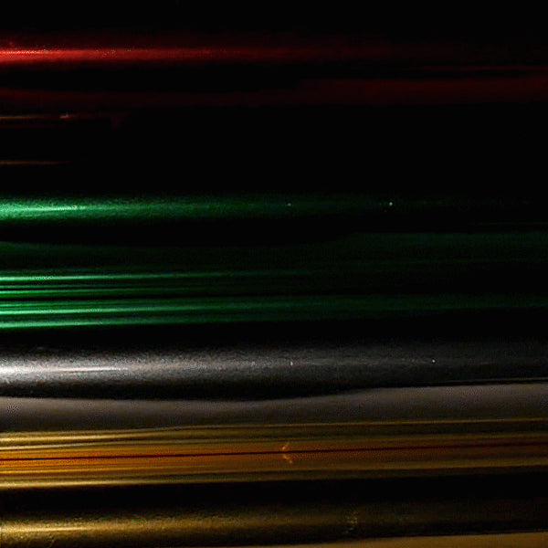 Glimmer Hot Foil Roll Holiday Variety Pack comes in a 15 foot roll (five inch width) each in four different colors including: Red, Green, Gold, Silver.