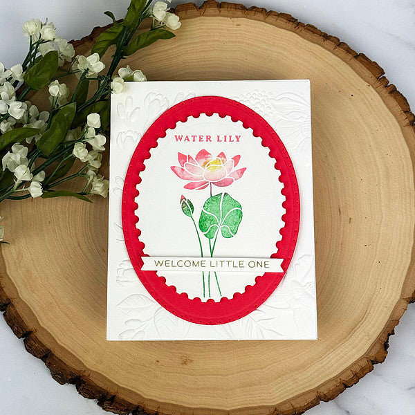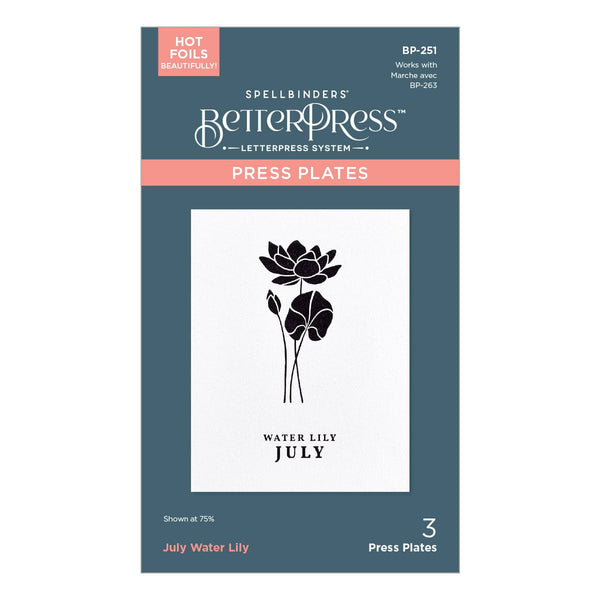 July Water Lily Press Plates are from the Florals Through the Year Collection. The water lily's journey from the depths of muddy water to the surface symbolizes its path to enlightenment. The set of three plates includes the floral focal point, the birth flower month, and flower name. This lovely flower is ideal for celebrating July birthdays, but is versatile enough to be used in a myriad of ways! Create a field of flowers with several of the plates from this collection, or make this flower a focal point with a sentiment of your choice.