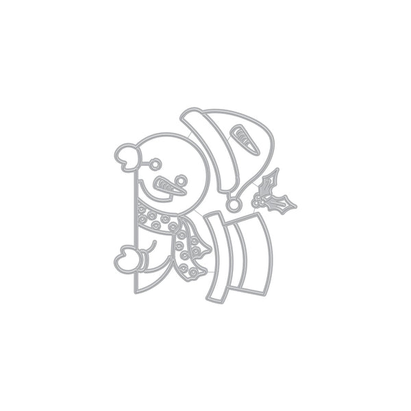 An adorable snowman, peeking around the corner. Comes with additional hat dies to mix and match. Perfect for cards, tags, scrapbooks, and more!