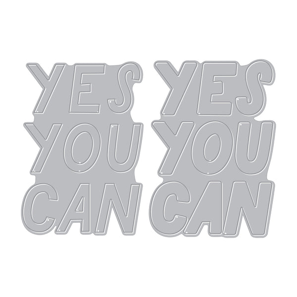 Make an impact with the Yes You Can Die Set. This set includes two coordinating metal dies that come together to form a bold, uplifting sentiment. The first die cuts the main "Yes You Can" lettering, while the second creates a perfectly sized shadow layer for added depth and dimension. Use them together to craft eye-catching cards, tags and motivational projects with ease.