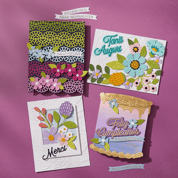 Add an international flair to your projects and show off your language skills with the International Sentiments Collection! Make them shine by die-cutting, impressing with the BetterPress System, or adding sparkling greetings with the Glimmer Hot Foil System.