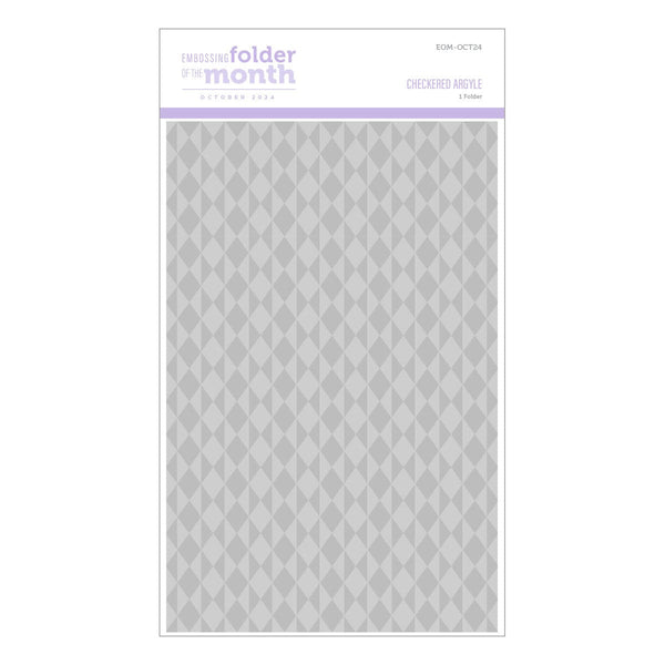 Checkered Argyle Embossing Folder of the Month released October 2024 to our Embossing Folder of the Month Club. This large embossing folder can make slimline, 5? x 7?, and a variety of sized projects. Perfect for adding texture and dimension to your card projects.