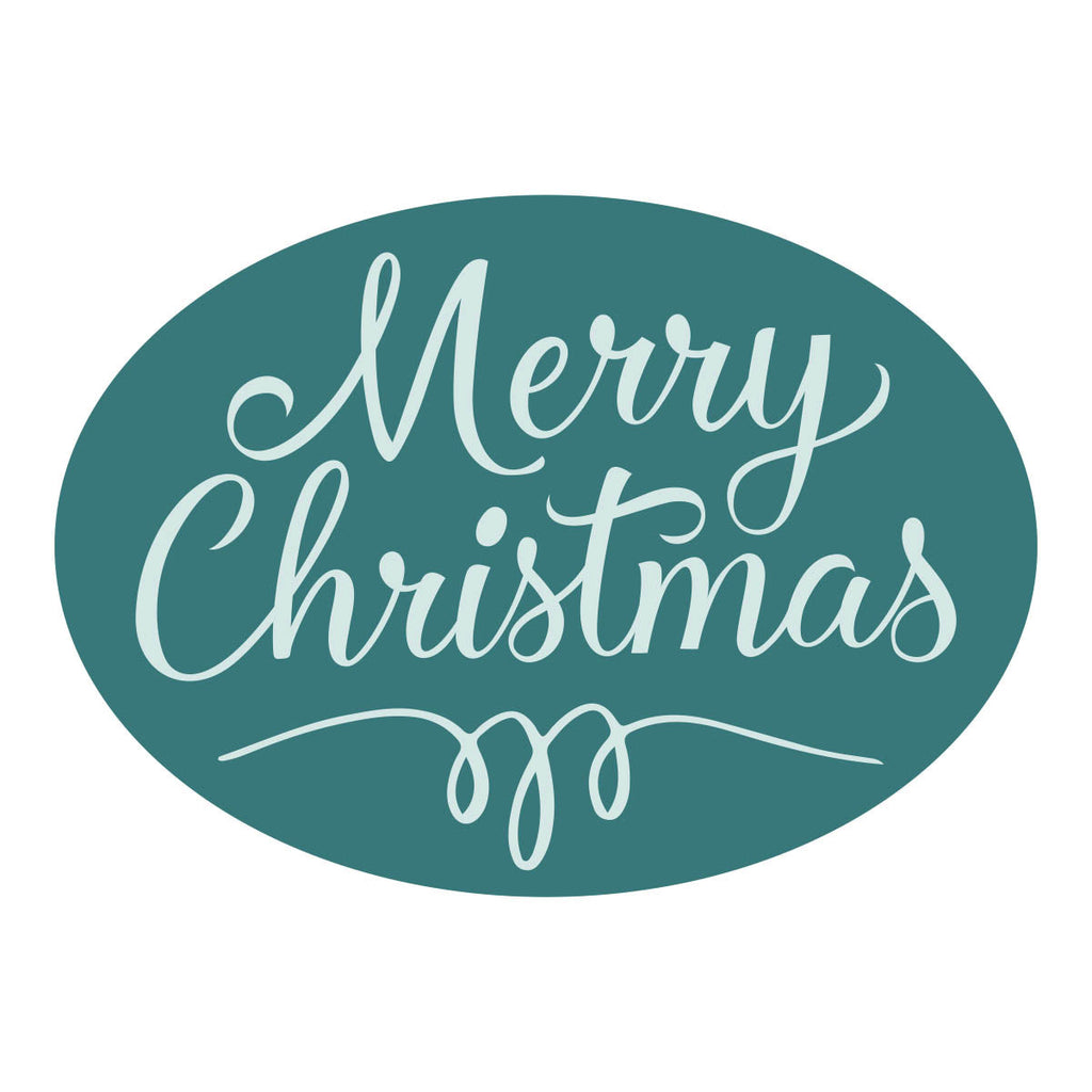 Merry Christmas Oval Wax Seal Stamp is from the Sealed for Christmas Collection. It has one wooden handle that supports a 13/16 x 1 1/8-inch oval brass stamp design on its end. The Merry Christmas sentiment is in a lovely script font with a loopy accent to anchor it.