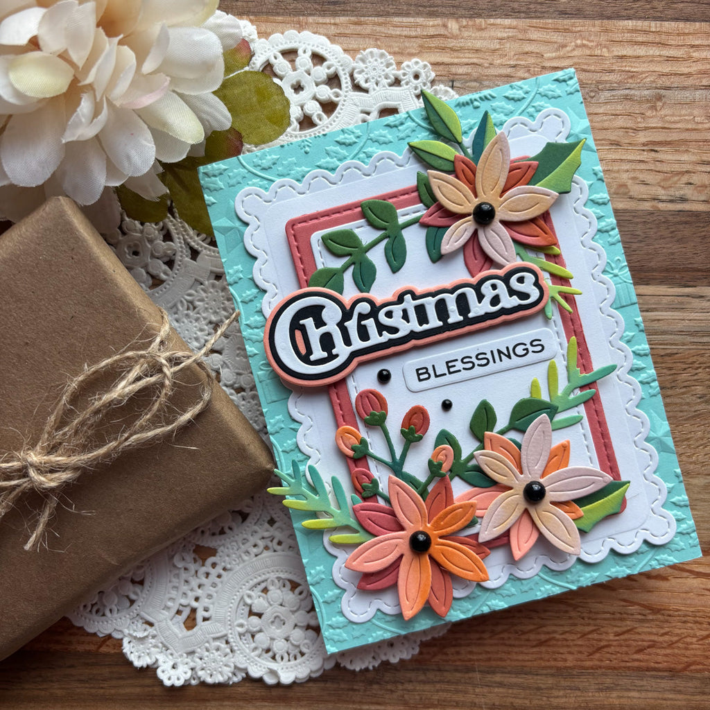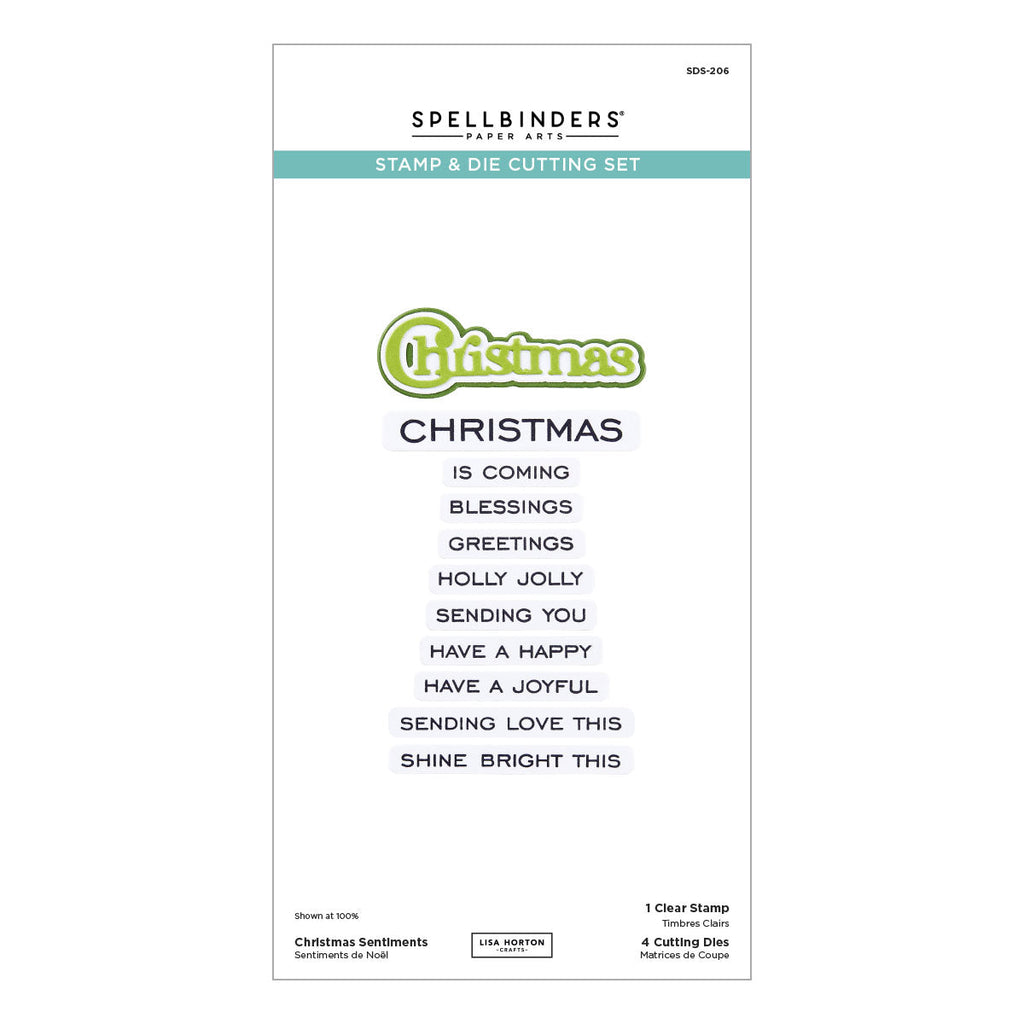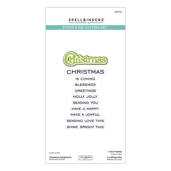 Christmas Sentiments Clear Stamp & Die Set is part of the All About Christmas Collection by Lisa Horton. There are ten sentiment stamps that work around the word, Christmas. With this set of one clear stamp and four matching thin metal cutting dies, it cuts the ten sentiment strips and a shadowed word, Christmas. Make each sentiment stand out even more on a card creation.