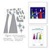 The Three Magi Stamp & Die Set is from the Wonderland Collection. The 11 thin metal cutting dies cut a detailed king shape. The king base has scored lines to fit the other pieces easily in place. Accessories include stars, crowns, gifts and more. The four clear stamps are sentiments: Rejoice, Sending Gifts of Hope, Love and Joy, Peace to You this Holiday Season, and Let the Star Guide Your Heart this Christmas. The stamps are made in the USA with high-quality polymer for perfect impressions every time. Designed to be used with a clear stamp block.