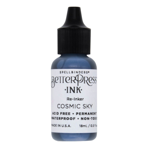 The BetterPress Reinker comes in a convenient 0.5 oz./14.80 ml bottle, giving you ample amounts to keep your coordinating ink pad fresh and ready for your next project. Unleash your creativity and elevate your crafting game with BetterPress and Cosmic Sky BetterPress Reinker!