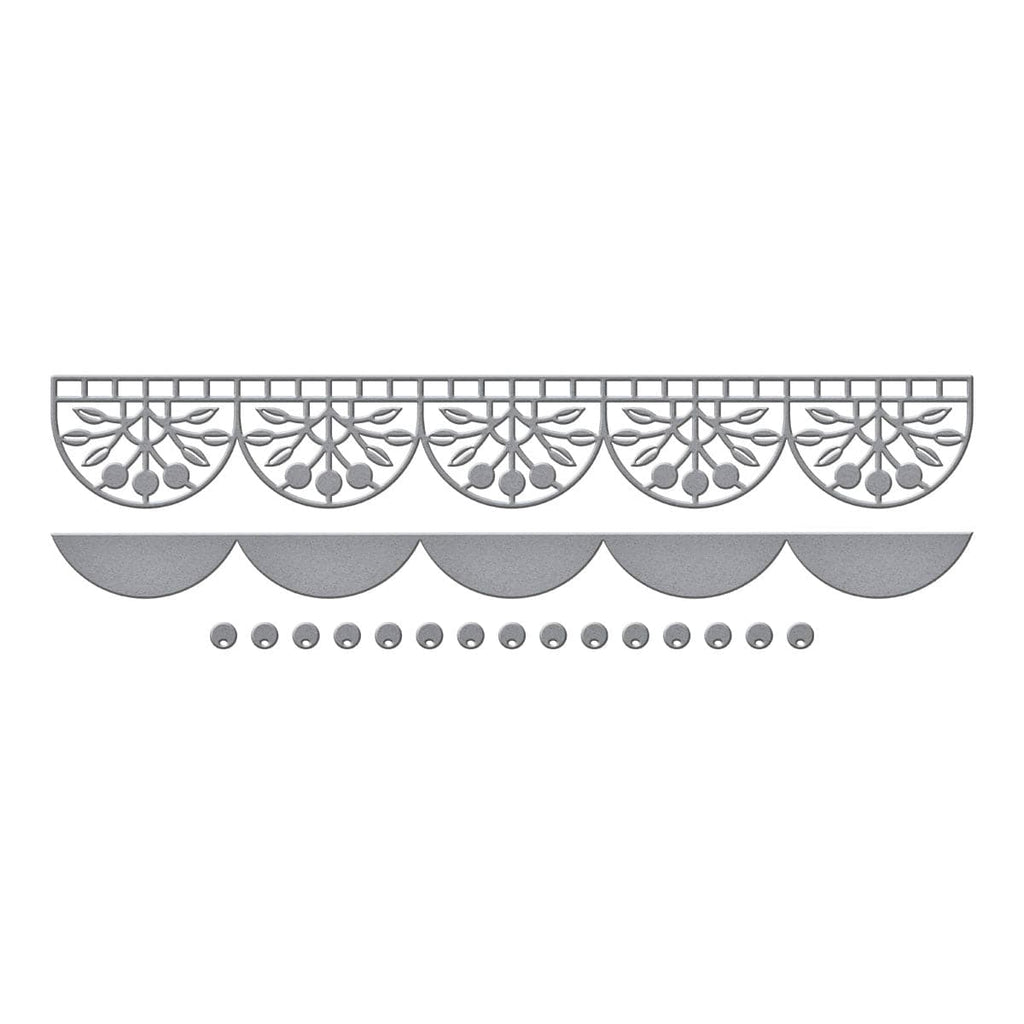 Berry Fields Border Etched Dies are from the Vivid Expressions Collection. Die-cut the set of seven thin metal cutting dies to make a sweet berry and leafy border with its scalloped edge. Nest the border die and rim together to make a detailed scalloped edge. The finished border measures 7.00 x 1.02 in./17.80 x 2.60 cm.