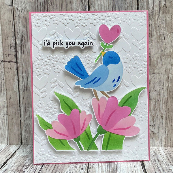 Blend vibrant inks for a playful look or keep it soft and serene with pastels. Ideal for friendship cards, Valentine’s projects, spring sentiments, or any moment where love deserves to land beautifully.
