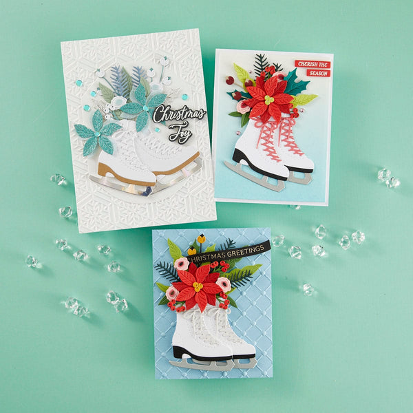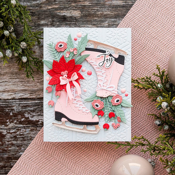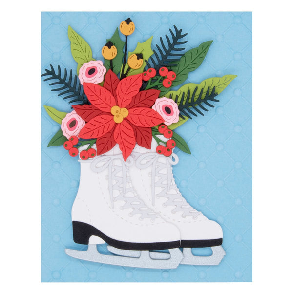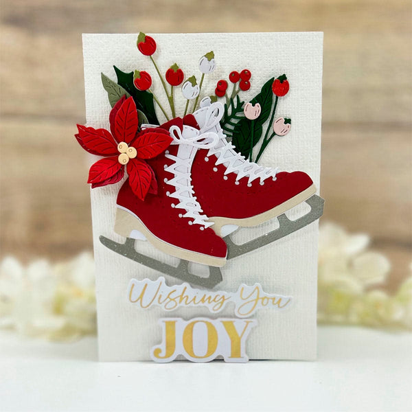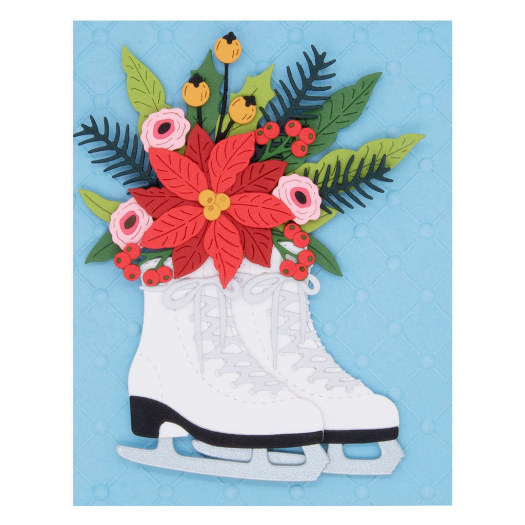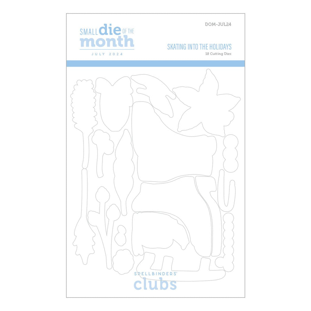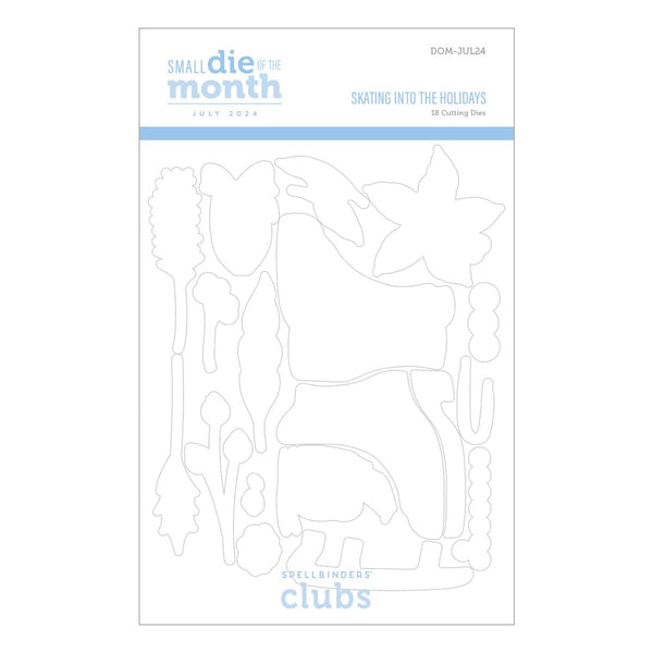 Skating Into The Holidays- Small Die of the Month! This 18-piece Die Set released July 2024 to our Small Die of the Month Club creates a variety of fun card fronts. Use to create cards, décor, gift card holder, gifts, and more!