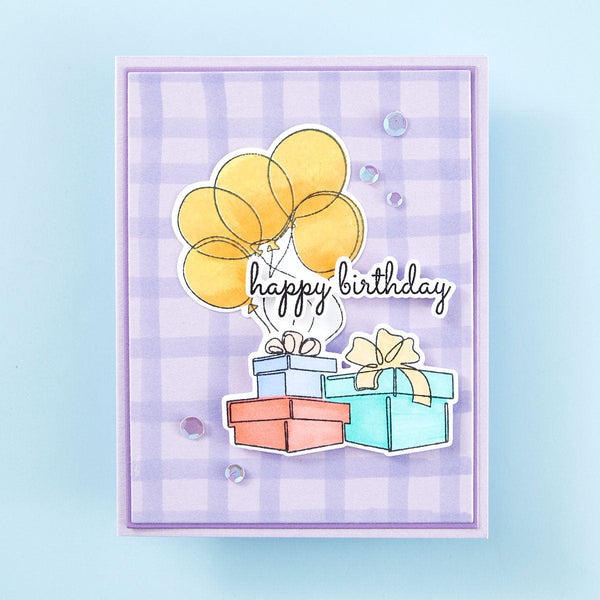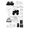 Ranger Birthday Party Clear Stamp Set by Simon Hurley has a set of twenty clear stamps perfect for celebrating all the birthdays in your life! It includes layering stamps of a towering birthday cake with colorful dripping frosting, a bright bouquet of balloons and multiple stacks of gifts. Also includes nine sentiments for just the right message. So fun! Coordinates with S5-640 Birthday Party Etched Dies to perfectly cut out all the images.