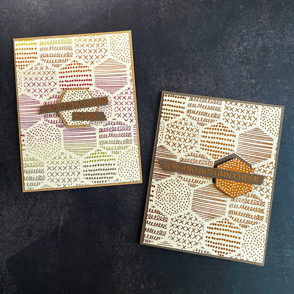Press the full background for bold texture, or highlight individual hexagons for a custom patchwork look. Whether used with fall colors or bright year-round hues, this set brings effortless artistry and a handmade feel to your BetterPress creations.