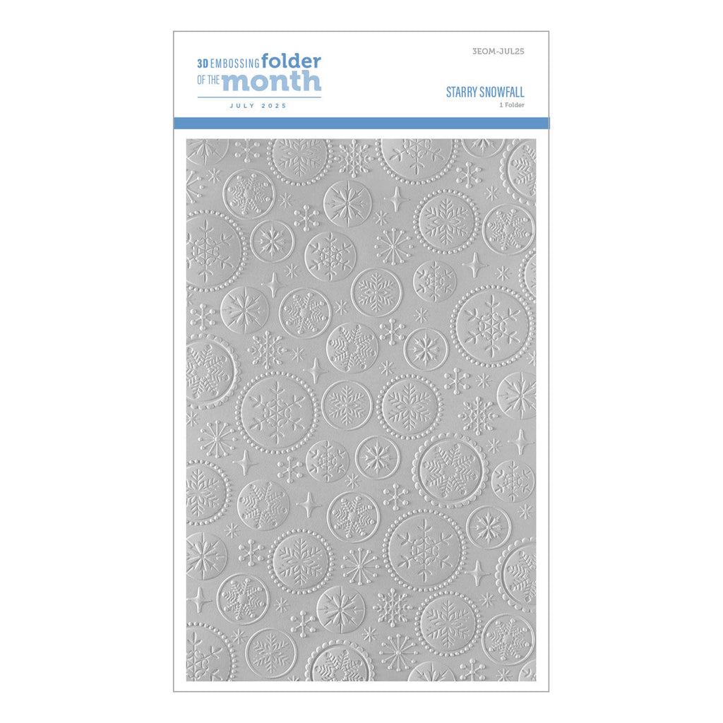 Starry Snowfall - 3D Embossing Folder of the Month - released July 2025 to our Embossing Folder of the Month Club. This large embossing folder can make slimline, 5.5? x 8.5?, and a variety of sized projects. Perfect for adding even more texture and dimension to your card projects.