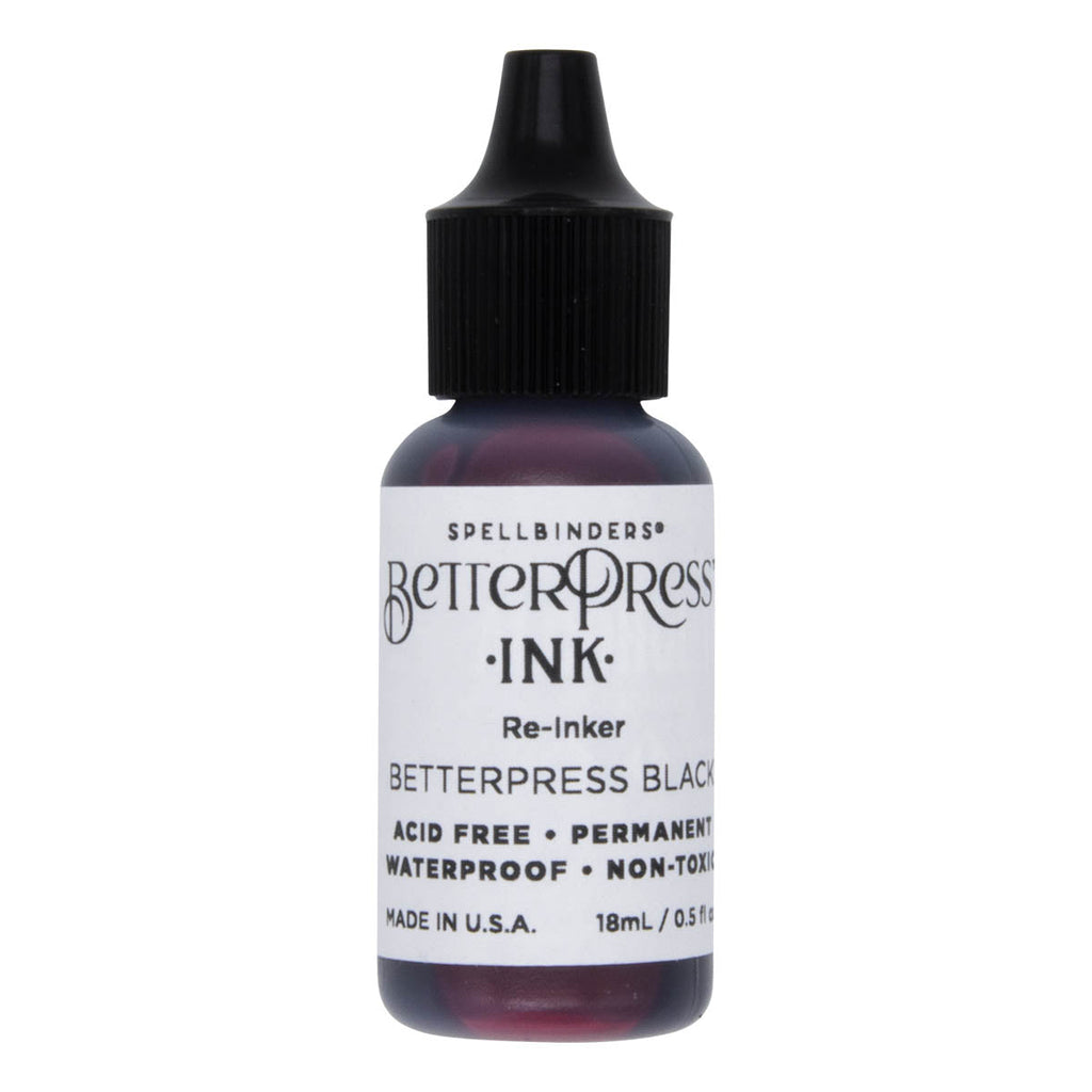 The BetterPress Reinker comes in a convenient 0.5 oz./14.80 ml bottle, giving you ample amounts to keep your coordinating ink pad fresh and ready for your next project. Unleash your creativity and elevate your crafting game with BetterPress and Black BetterPress Reinker!