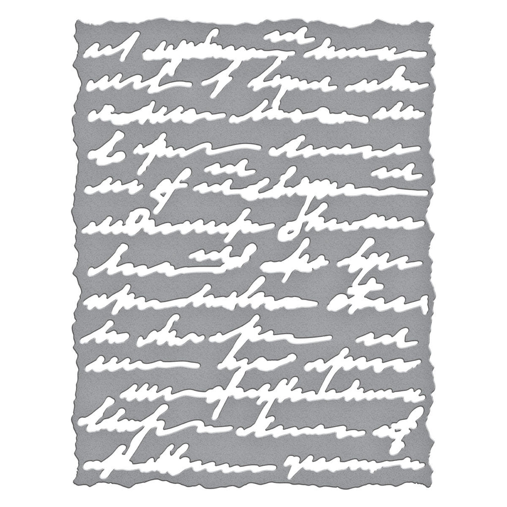 Deckled Edge Script Etched Dies are from the Beautifully Imperfect Collection. What an amazing background to create with these two thin metal cutting dies! Use the outline die separately to create a standard A2-sized (4.25 x 5.50 in.) panel of torn-edged paper, or nest the two dies together to cut a detailed scripted panel.