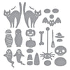Halloween Tick Tock Etched Dies are from the Cuckoo Cottage Collection. This set of 17 thin metal cutting dies has lots of fun and cute Halloween-themed elements to accent on projects. But it works with and perfectly adorns S5-701 Cuckoo Cottage set.