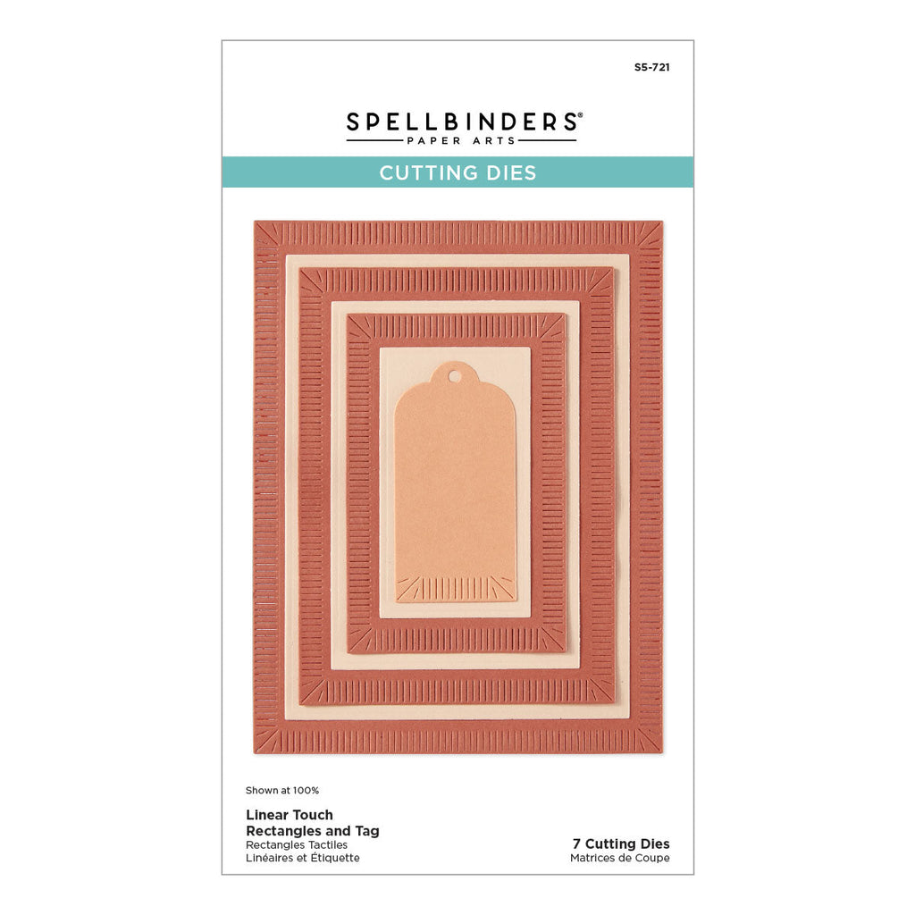 Linear Touch Rectangles and Tag Etched Dies are part of the Happier Hour Collection. This set of seven thin metal cutting dies are rectangular in shape with lined decorative edges that give a tailored, finished look. Use them as backdrops to anchor your design, nest two to cut a frame or make shaped cards. So many options with this set! The smallest shape is a tag to accent a project or add to a gift.