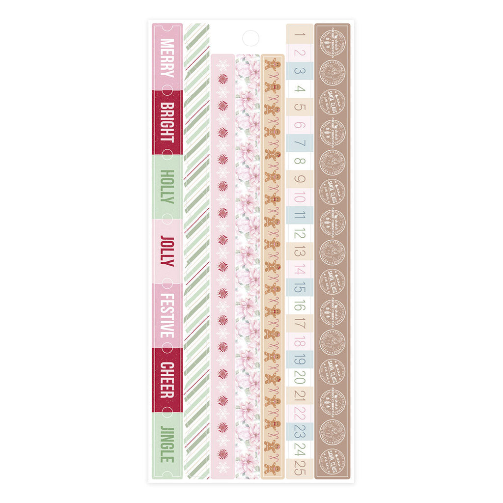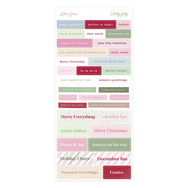 Rosie's Studio - Peppermint Twist Sticker Book comes in six sheets that are full of sentiments, letters, seasonal icons, label shapes and washi tape strips. Mix and match from this book to give you interest and beautiful accents on your cards, scrapbook pages, planner and more!