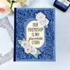 Friendship Book Plate- BetterPress Plate of the Month - Released March 2024 to our BetterPress Plate the Month Club creates a beautiful floral frame and sweet sentiments. Use to create cards, décor, gift card holder, gifts, and more!