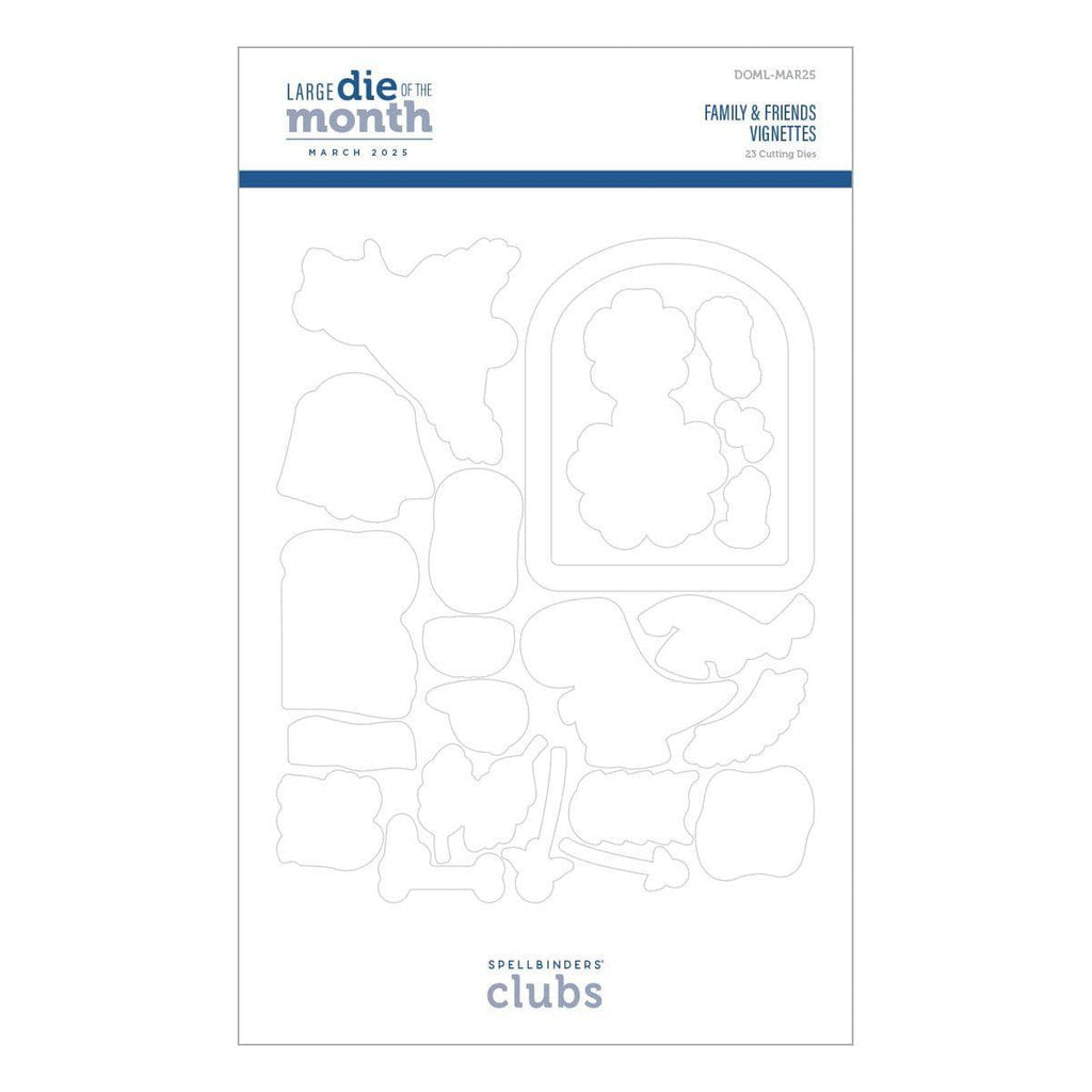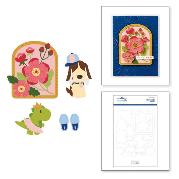Family & Friends Vignettes - Celebrate the special moments shared with loved ones using the Family & Friends Vignettes die set, featured as the March 2025 Large Die of the Month. This charming 23-piece set includes everything you need to create heartwarming scenes—featuring an arched frame, blooming florals, and playful character elements like a lovable dog, an adorable dinosaur, and cozy accessories. Perfect for crafting cards, scrapbook layouts, and keepsakes, this set brings personality and warmth to every project. Layer, mix, and match the pieces to create delightful, dimensional designs that capture the joy of family and friendship.