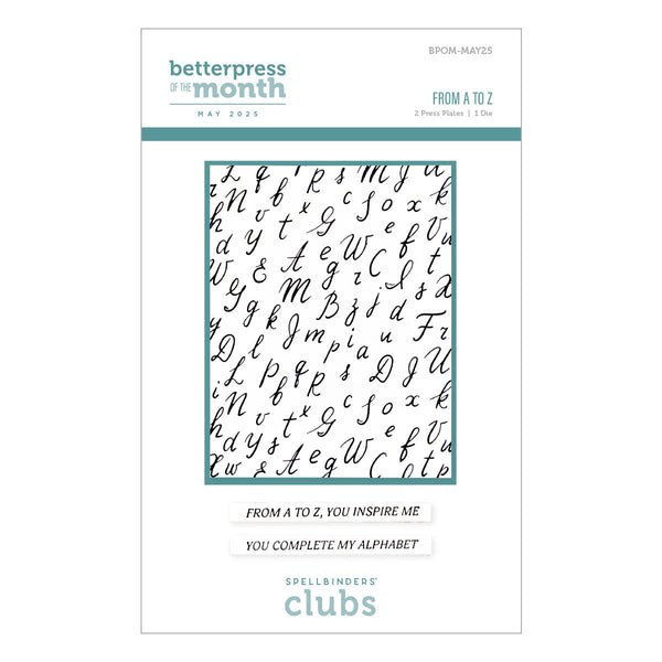 From A to Z - May 2025 BetterPress of the Month: Let your creativity soar with the May 2025 BetterPress of the Month, From A to Z. This elegant set features 2 press plates and 1 coordinating die, offering endless possibilities..