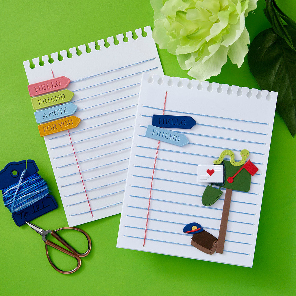Also included are five sentiment tabs—Hello, For You, Thanks, Friend, and A Note—perfect for customizing your cards, tags, or journal pages. Whether you're sending happy mail or crafting a nostalgic classroom-inspired scene, this set adds personality and texture to every detail.